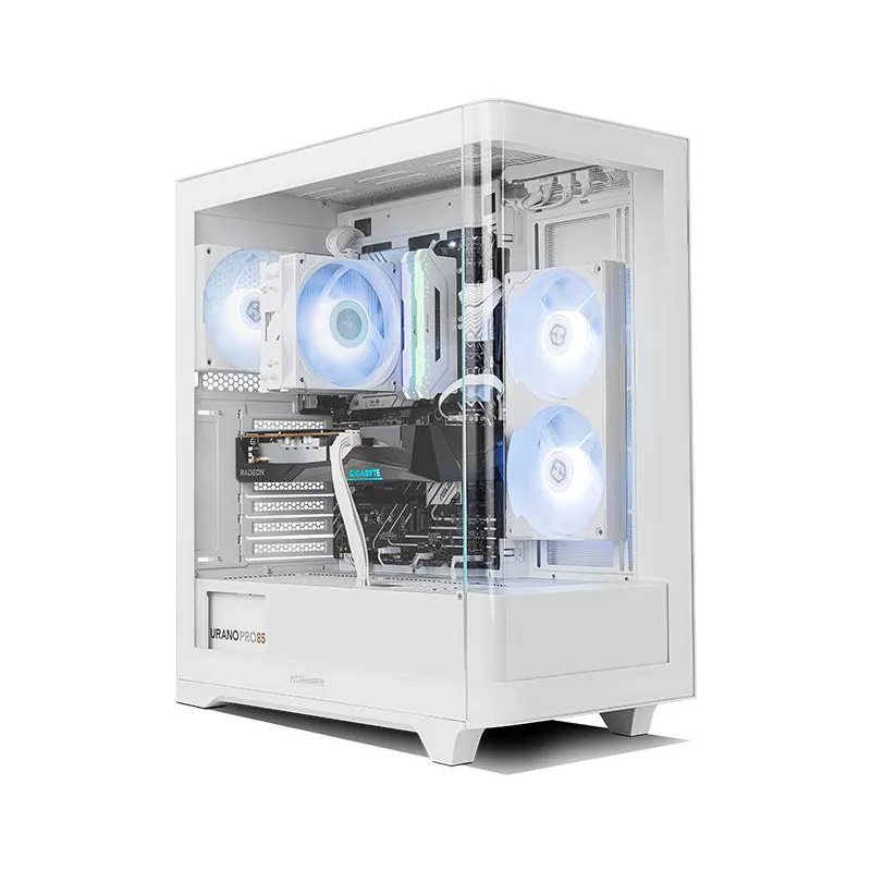 Gracias a su diseño bien pensado, la Torre Nox Hummer ETHER Blanco es compatible con una amplia gama de componentes. Soporta fuentes de alimentación ATX y discos duros de 2.5" y 3.5", ofreciendo flexibilidad para distintas configuraciones. Su estructura permite una instalación sencilla y segura, incluso para usuarios con poca experiencia. Con un peso de 8,3 kg, mantiene una buena estabilidad sin dificultar su transporte. Las dimensiones de 470 mm x 415 mm x 230 mm ofrecen un equilibrio entre espacio interno y tamaño externo, adaptándose fácilmente a escritorios y espacios de trabajo compactos.
