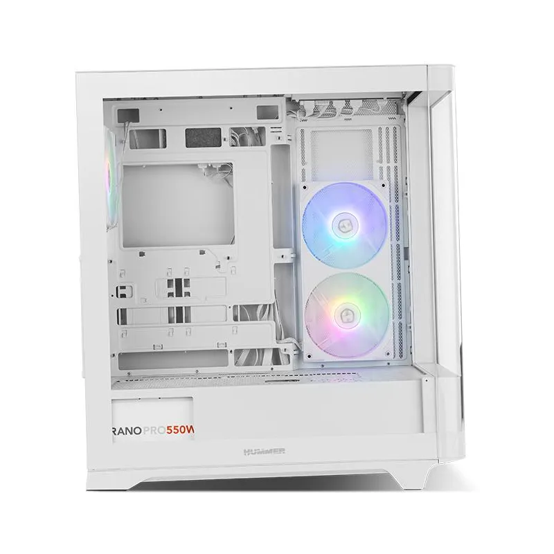 Torre Nox Hummer ETHER Blanco con ventiladores superiores 140 mm, ventana lateral y soporte para tarjetas gráficas de hasta 39 cm de longitud