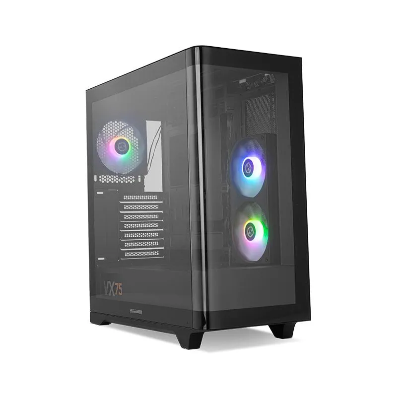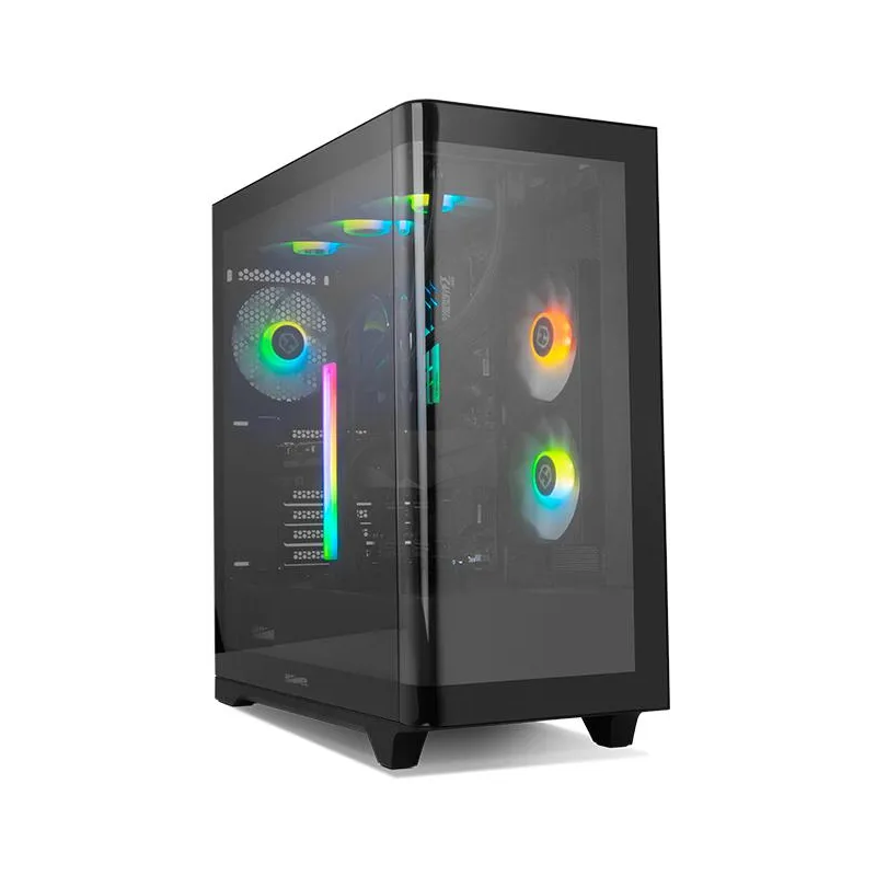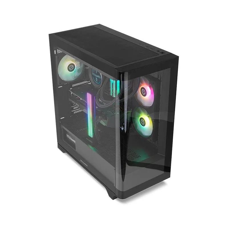 Torre Nox Hummer ETHER Negro es una caja de ordenador diseñada para ofrecer un equilibrio perfecto entre estética, funcionalidad y rendimiento. Fabricada con vidrio templado y acero SPCC, esta torre midi proporciona una estructura robusta y moderna, ideal para entornos gaming exigentes. Su compatibilidad con placas base ATX, ITX y Mini-ATX permite una gran versatilidad en la configuración del sistema. Además, cuenta con una excelente capacidad de refrigeración, con soporte para hasta tres ventiladores superiores y refrigeración líquida, lo que garantiza un flujo de aire eficiente. La Torre Nox Hummer ETHER Negro incluye también un ventilador trasero de 120 mm preinstalado para mejorar la ventilación desde el primer momento. Con una altura máxima para el disipador de CPU de 17 cm y una longitud máxima para la GPU de 39 cm, ofrece espacio suficiente para componentes de alto rendimiento.