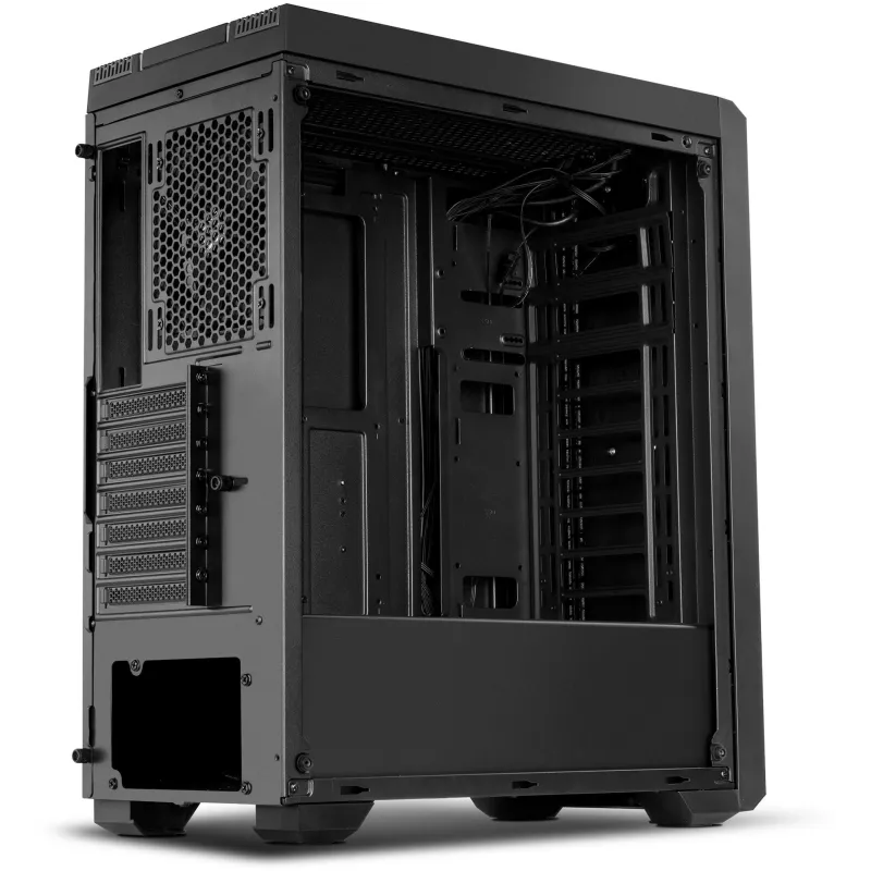 El sistema de gestión de cables asegura un interior ordenado y eficiente, mientras que permite una altura máxima para el refrigerador de CPU de 17.9 cm y una longitud máxima para la tarjeta gráfica de 37 cm. Aunque la fuente de alimentación no está incluida, cuenta con entradas y salidas de audio, 2 puertos USB 2.0 y 2 puertos USB 3.2 Gen 1 tipo A para una conectividad completa.