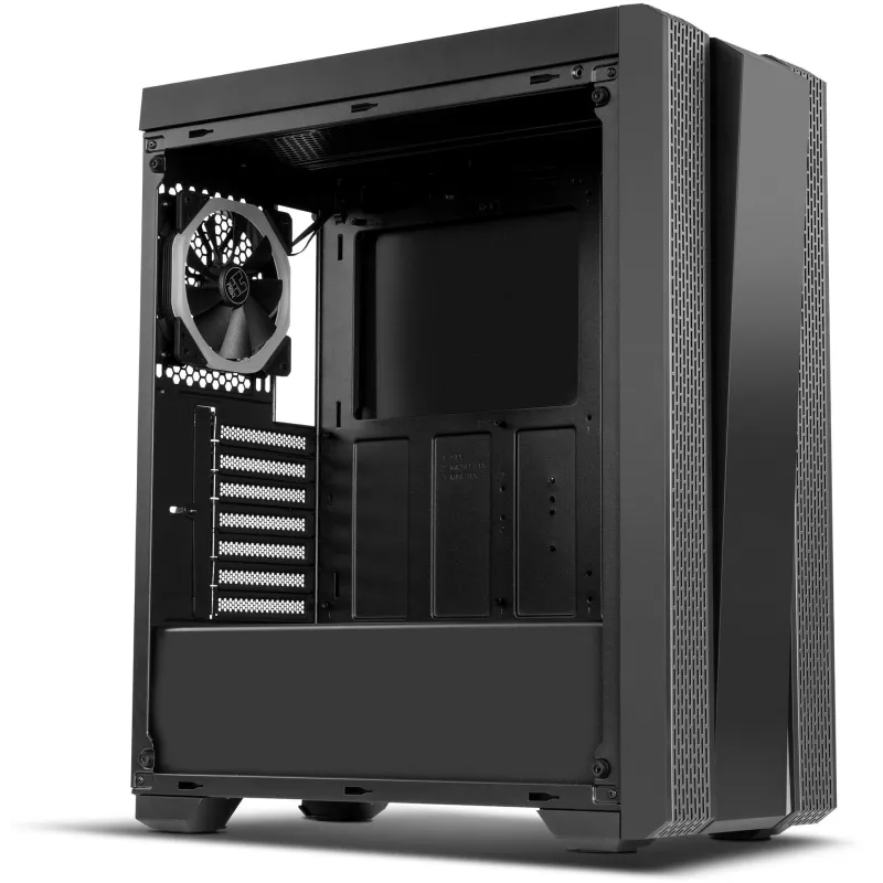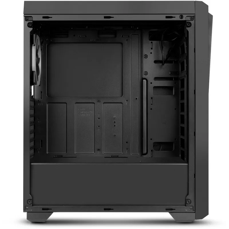 Este gabinete de PC de material SPCC en elegante color negro, ofrece un diseño Midi Tower que soporta formatos de tarjeta madre ATX y Mini-ITX. Equipado con 2 puertos de 3.5" y 2 bahías de 2.5", además de 2 bahías internas de 3.5" y 7 ranuras de expansión, proporciona una capacidad de almacenamiento y expansión notable. La ventana lateral y la iluminación LED en colores azul, verde y rojo en los ventiladores y el frente, le dan un toque moderno y atractivo.