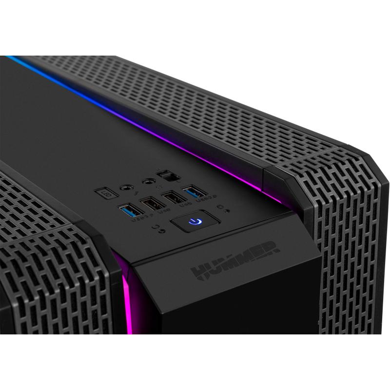 ILUMINACIÓN ARGB CHASIS DE VIDRIO TEMPLADO: Hummer Fusion lleva la iluminación un paso más allá. Su frontal diseñado con acabados mesh y LEDs ARGB con modo Rainbow junto con su ventilador trasero ARGB son la combinación perfecta para configurar un atractivo equipo de altas prestaciones.