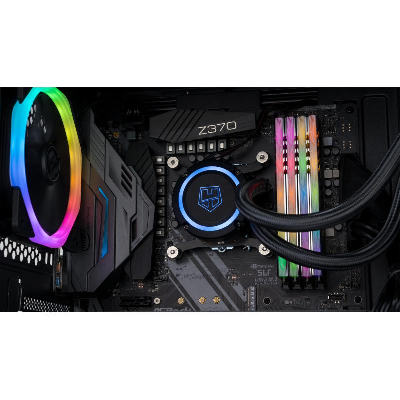SISTEMA DE VENTILACIÓN: Hummer Fusion cuenta con un completo sistema de ventilación. En ella es posible instalar hasta 6 ventiladores. Tres de 120 mm o dos de 140 mm en el panel frontal, dos de 120 mm o 140 mm en el panel superior, además del incluido en el panel lateral de 120 mm con iluminación LED ARGB Rainbow.