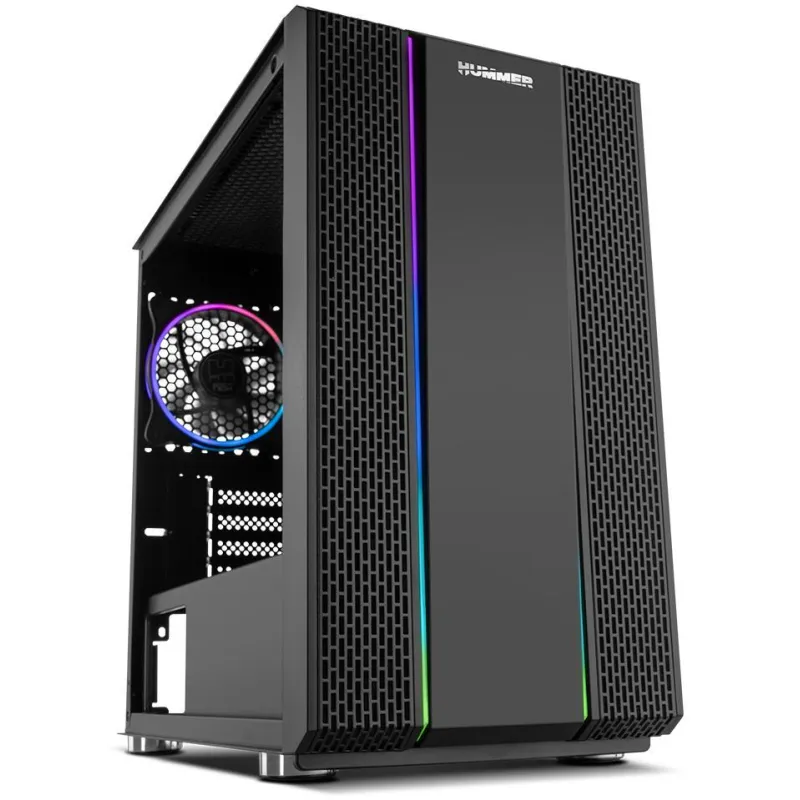 OPCIONES DE REFRIGERACIÓN: Mantener una óptima refrigeración en el interior de la Hummer Fusion S es fácil ya que permite integrar distintos sistemas de refrigeración: dos ventiladores en la parte superior y dos en el frontal de hasta 140 mm (no incluidos) más el trasero de 120 mm ARG Rainbow ya preinstalado.