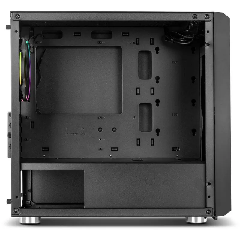 ILUMINACIÓN ARGB CHASIS DE VIDRIO TEMPLADO: Bajo una estética minimalista y cuidada se erige esta mini torre compacta y versátil que tiene capacidad para albergar diferentes configuraciones.