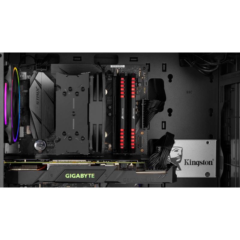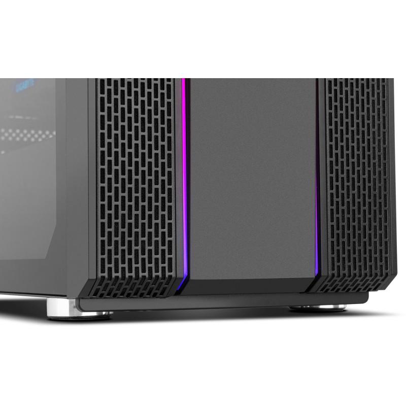 Posee un panel lateral de cristal templado que te ofrece una amplia visión del interior del PC y su panel frontal lo recorren dos tiras LED paralelas que la estilizan y la dotan de una fuerte personalidad.