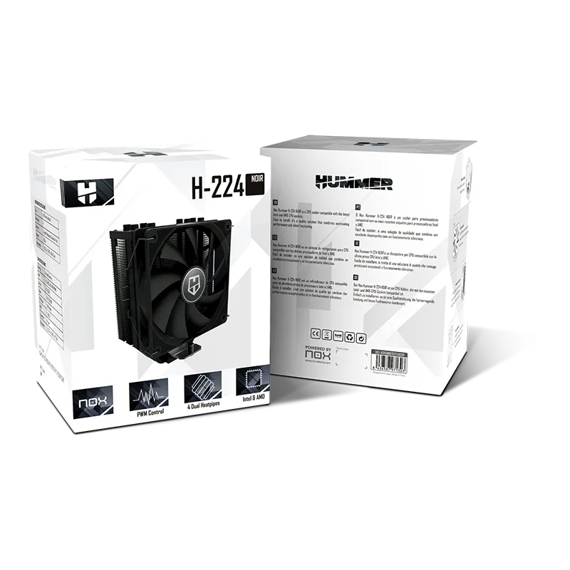 De Nox Hummer H-224 Noir sorprende su gran eficiencia térmica y su bajo nivel de sonoridad: es tan silencioso que resulta casi inaudible. Es perfecto para las configuraciones más exigentes, logrando mantener una temperatura baja, incluso, en las condiciones de mayor actividad.