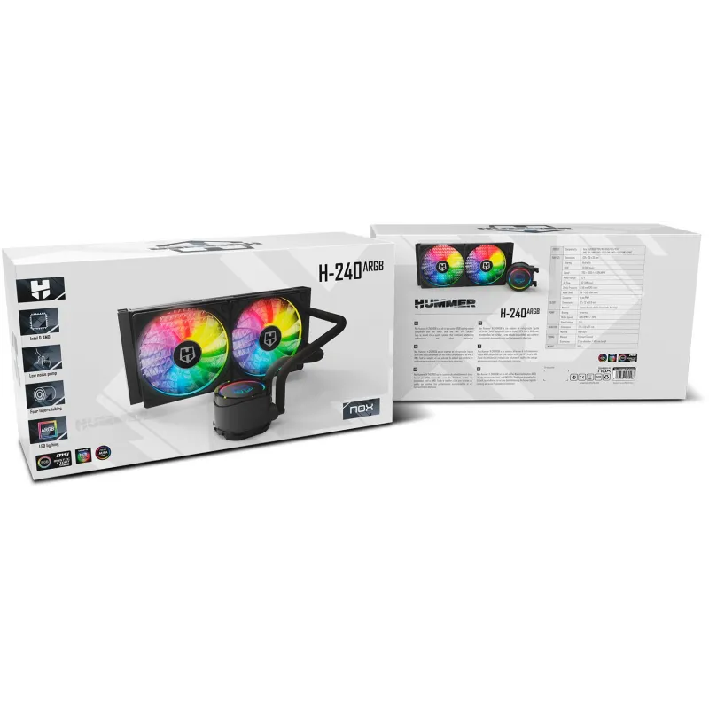 Kit de Refrigeración Líquida Nox Hummer H-240 ARGB con 2 Ventiladores 240mm, con Flujo de 62 cfm, Color Negro