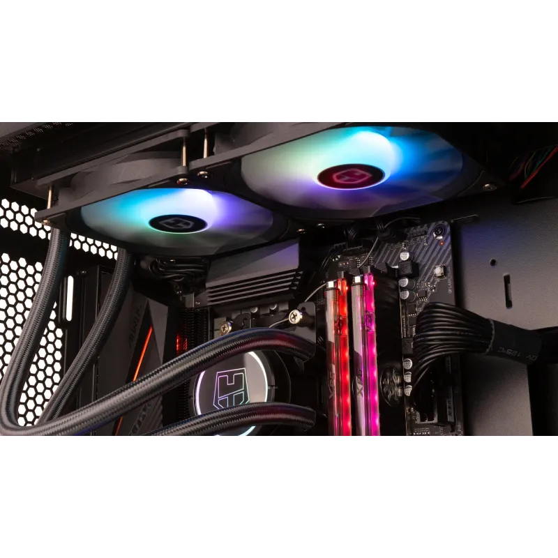 VENTILACIÓN EFICAZ: Su radiador de 240 mm y sus aletas aerodinámicas (que disminuyen las turbulencias entre ventilador y radiador) proporcionan a H-240 ARGB una alta eficiencia en el intercambio de calor y refrigeración de todo tu equipo.