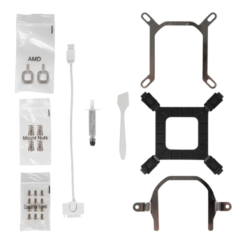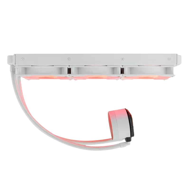 Si tu idea es un equipo blanco con iluminación sincronizable, este kit mantiene el look consistente en radiador, ventiladores y bloque.