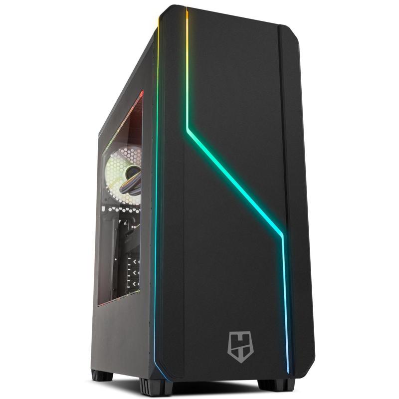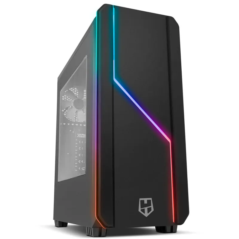 PERFECTO PARA LOS GAMERS: Este dispositivo no solo cumple con las expectativas de rendimiento, sino que también está especialmente adecuado para el mundo del juego. Su ventana lateral permite una visualización interna que, combinada con su iluminación en colores azul, verde y rojo, crea una experiencia visual impresionante. La iluminación está estratégicamente ubicada en el frente para destacar su diseño y su funcionalidad. Además, incluye botones de restaurar y de encendido/apagado, facilitando su uso y acceso inmediato.