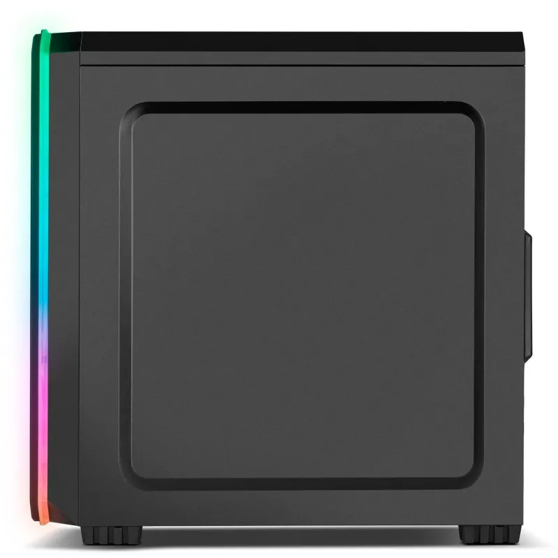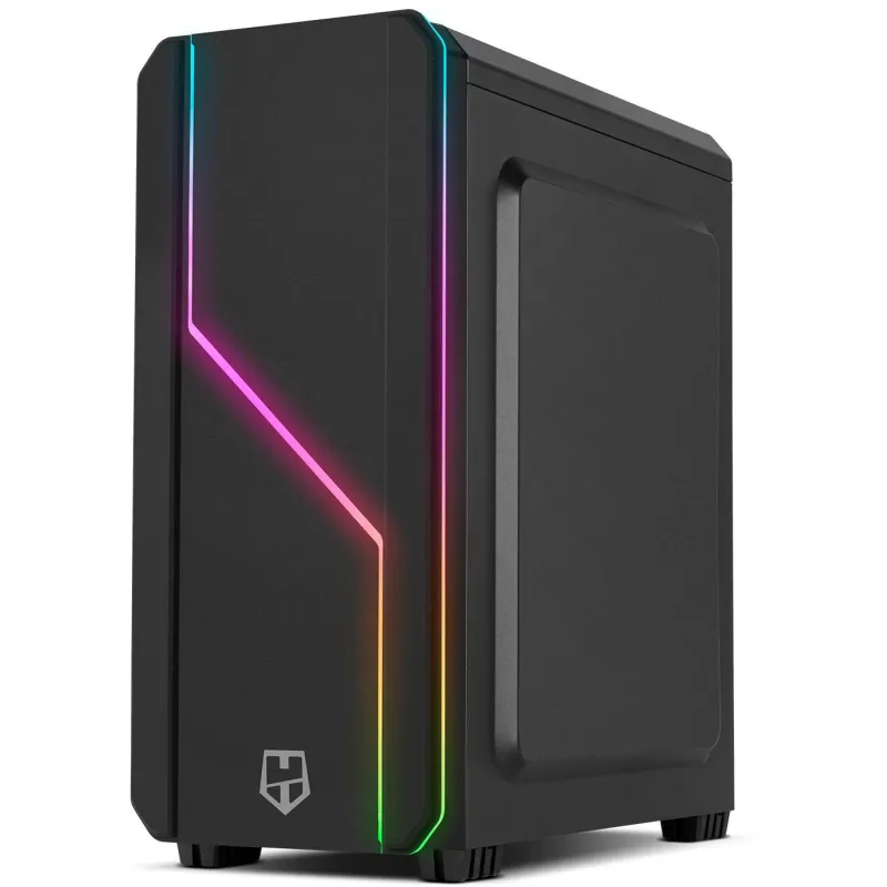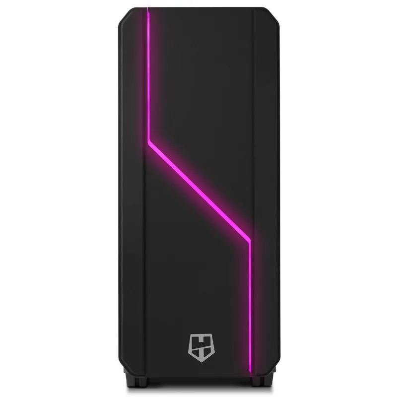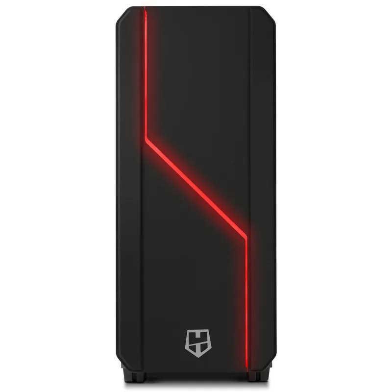 El gabinete de PC en formato Midi Tower está diseñado para ofrecer una experiencia de juego superior. Fabricado con materiales de alta calidad como Acrilonitrilo butadieno estireno (ABS) y SPCC, presenta un elegante color negro y una ventana lateral que permite admirar su interior.