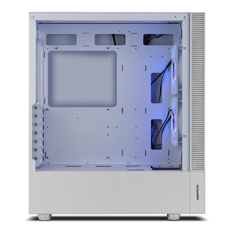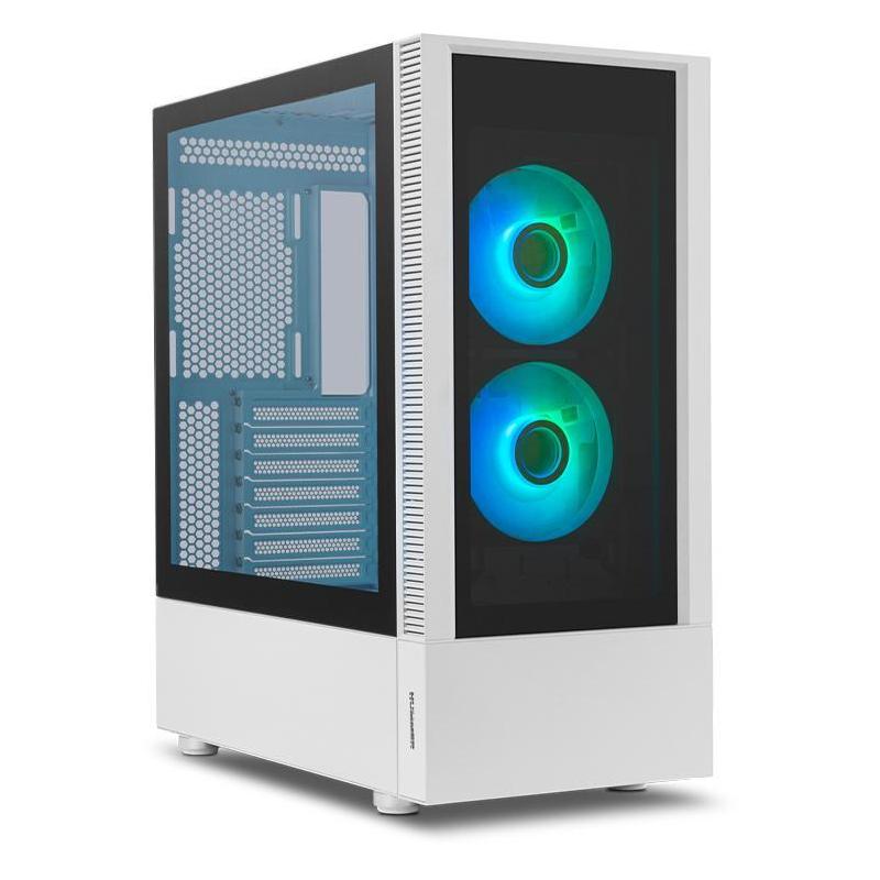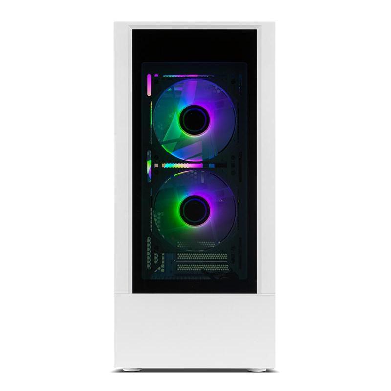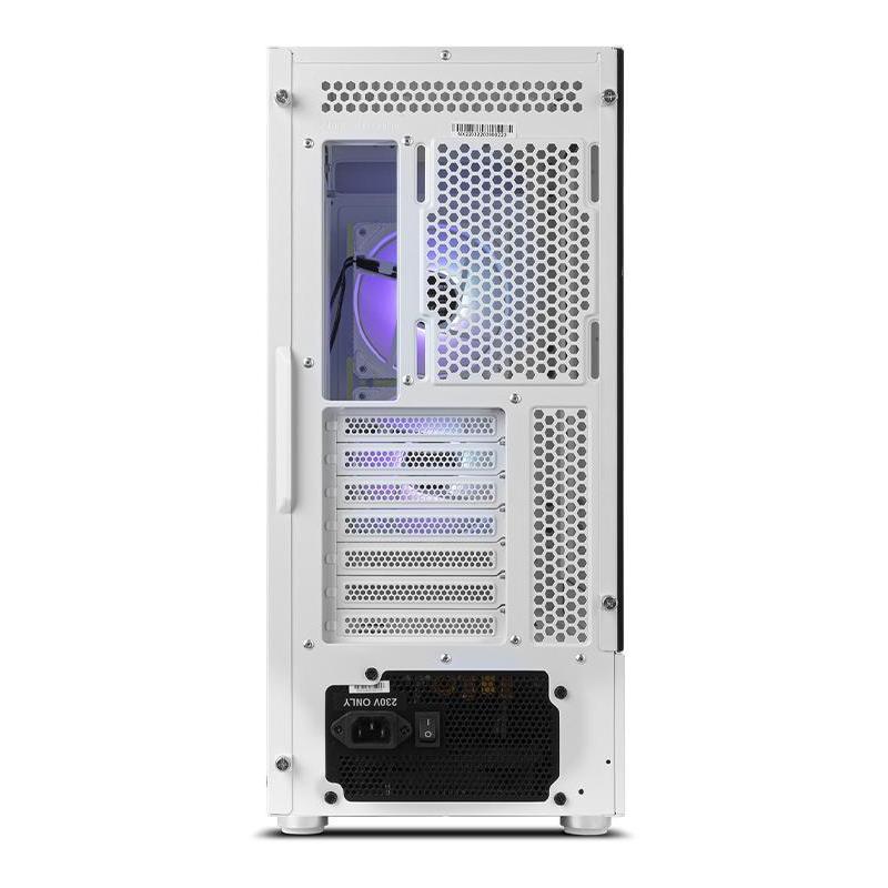 Descubre el impresionante diseño de esta torre para PC, fabricada con materiales de alta calidad como ABS, SPCC y acero, que garantizan durabilidad y resistencia. Con su factor de forma Midi Tower y un elegante color blanco, este chasis es compatible con tarjetas madre ATX y micro ATX, ofreciendo una amplia capacidad de expansión con 7 ranuras, 1 puerto de 3.5" y 3 bahías de 2.5". Su ventana lateral y paneles de vidrio templado permiten una vista clara de los componentes internos, realzada por la iluminación multicolor ubicada en los ventiladores de la caja. Además, cuenta con botones de restaurar y encendido/apagado para mayor conveniencia.