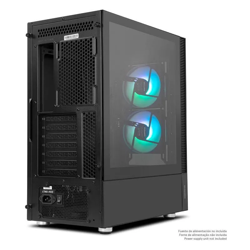 DISEÑO INNOVADOR Y RESISTENTE: Este dispositivo destaca por su estructura robusta, fabricada con materiales de alta calidad como ABS, SPCC y acero, que garantizan durabilidad y resistencia. Su elegante color negro y el formato Midi Tower lo convierten en una pieza versátil para cualquier configuración de PC. Compatible con tarjetas madre ATX y micro ATX, se adapta a diversas necesidades de ensamblaje. Además, cuenta con una ventana lateral que permite apreciar el interior y una atractiva iluminación multicolor ubicada en los ventiladores, añadiendo un toque estético distintivo. El diseño incluye un panel de vidrio templado, botones de encendido/apagado y restaurar, y una capacidad máxima para tarjetas gráficas de hasta 35 cm y PSU de hasta 23 cm, ofreciendo un equilibrio perfecto entre funcionalidad y estilo.