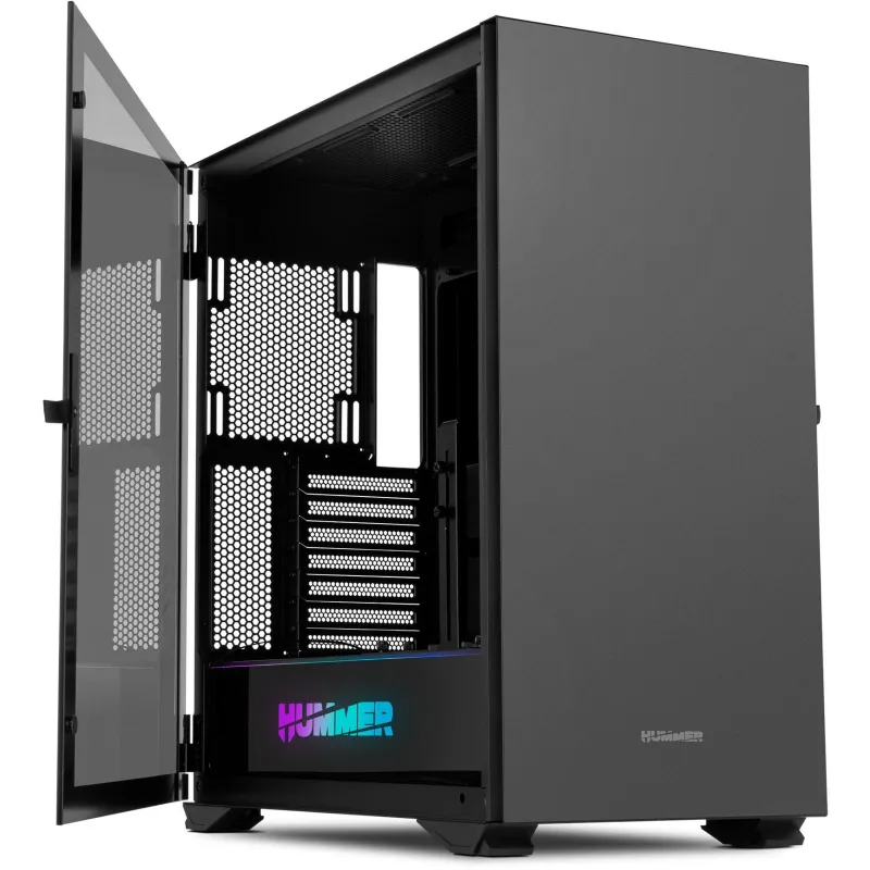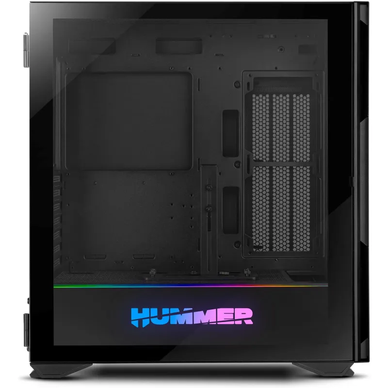 Con un diseño minimalista en su panel frontal, ha sido diseñada con un panel lateral de cristal templado de alta calidad de 4 mm. Con apertura de bisagra, este panel permite, asimismo, el acceso al chasis.