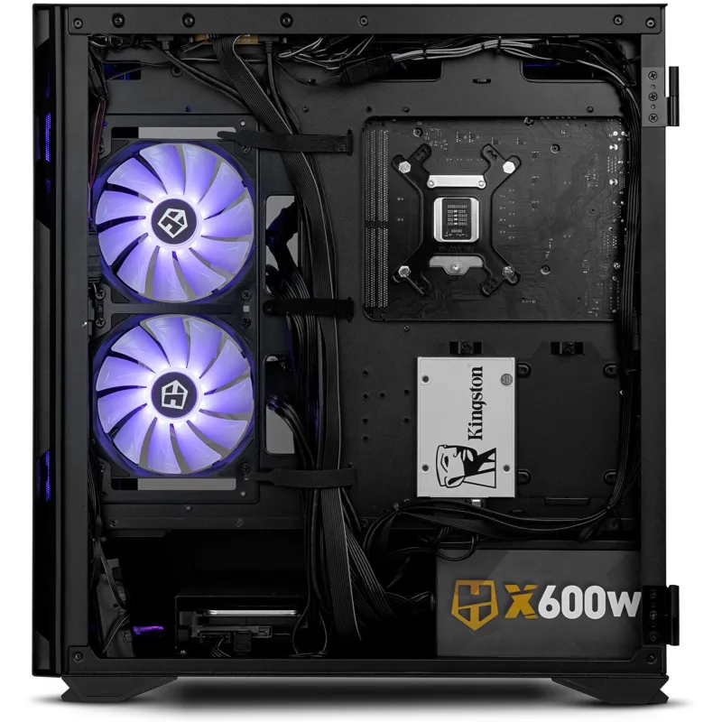 Para asegurar en todo momento la excelente temperatura de los componentes del equipo, Nox Hummer Nexus cuenta con un compartimiento inferior donde ubicar la PSU y los discos duros, de manera que evita que el calor de la fuente de alimentación y de estos otros componentes se transmita al resto. Este módulo, situado en la parte inferior, incorpora una espectacular iluminación ARGB que hace que el resto de componentes luzcan todavía más impresionantes.