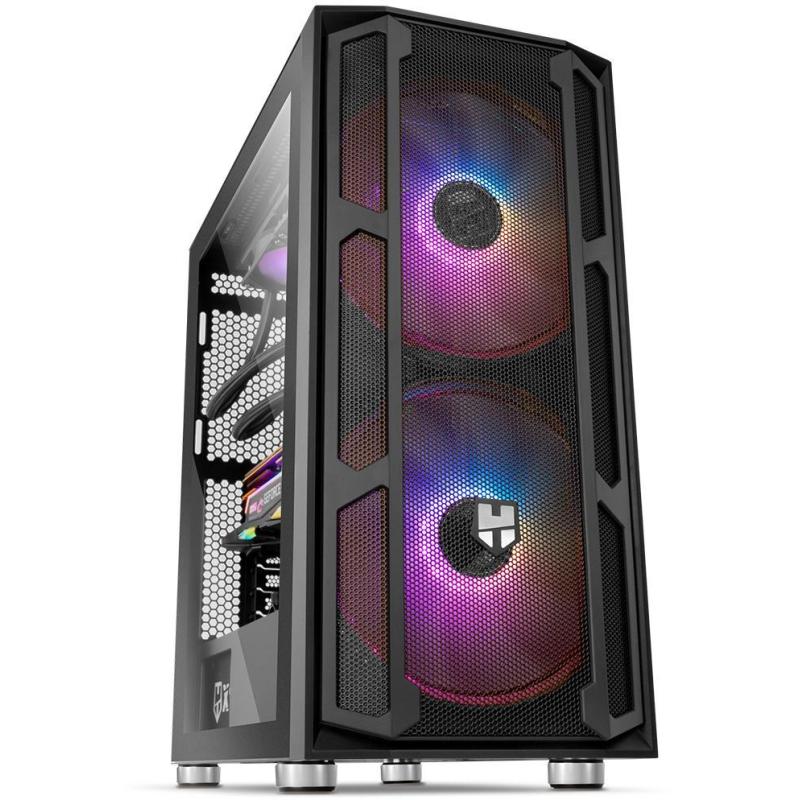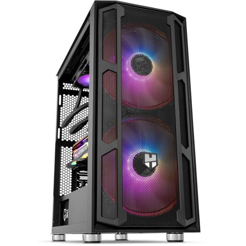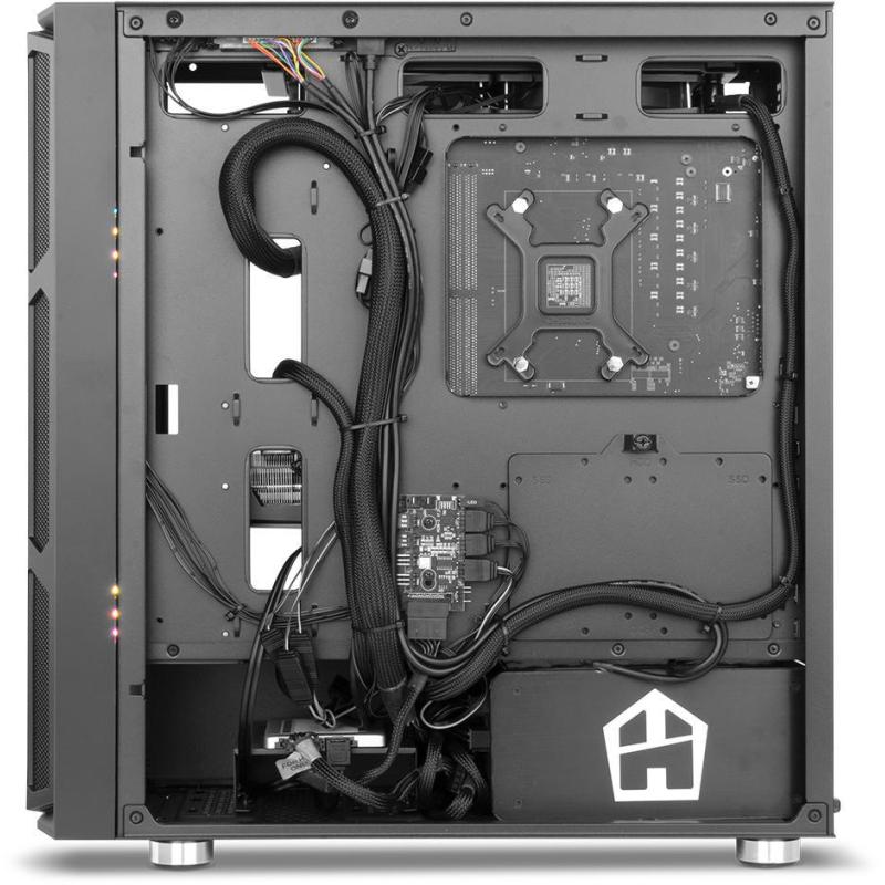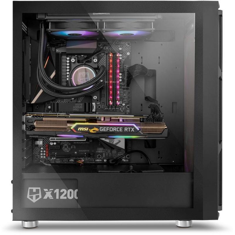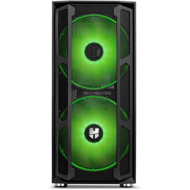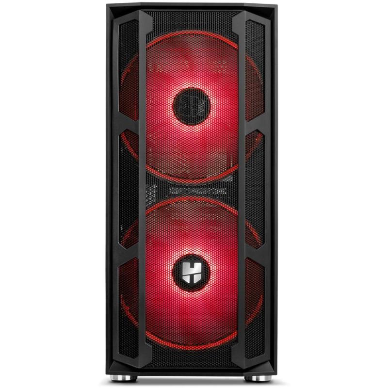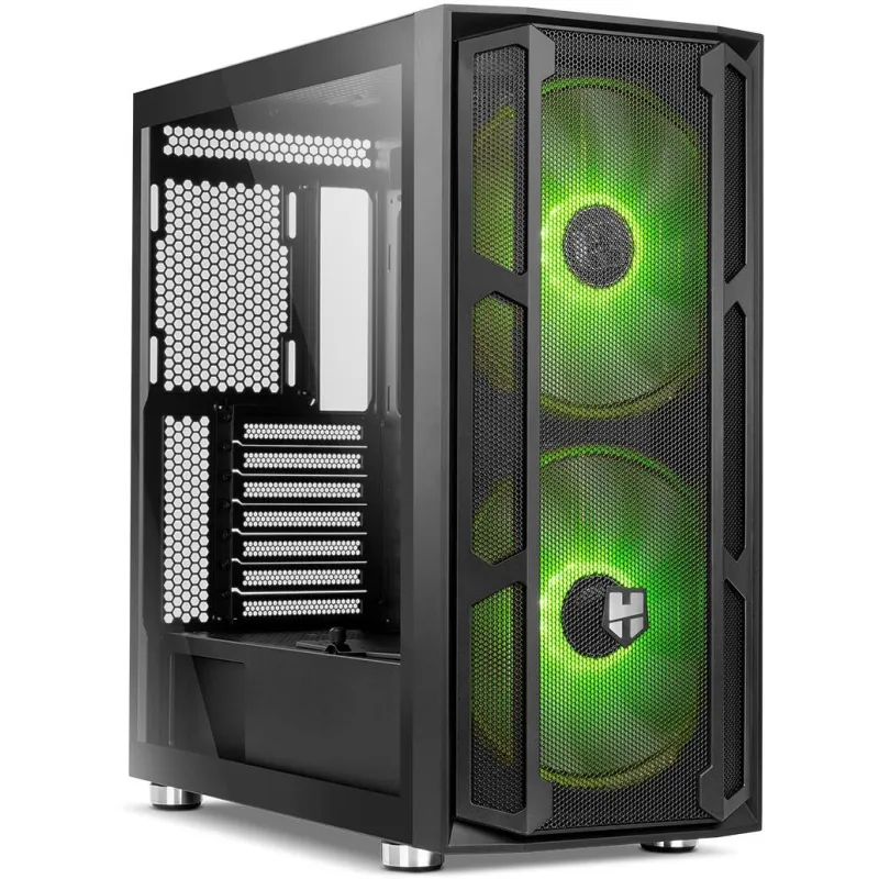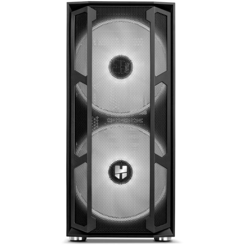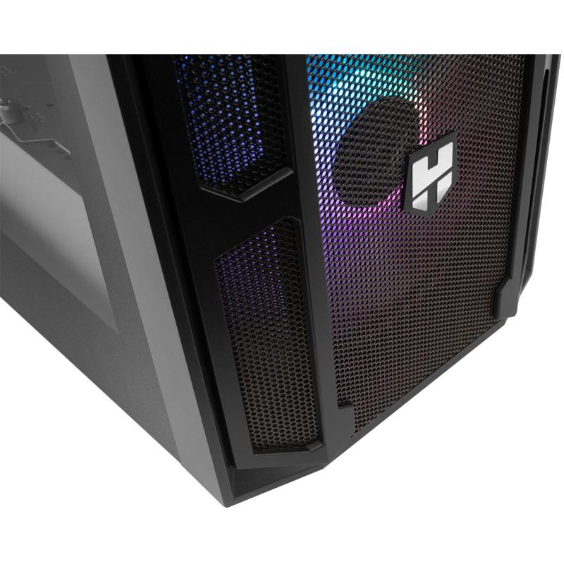 ILUMINACIÓN ARGB CHASIS REFORZADO: Hummer Nova es una semitorre de gran formato construida con acero de 0,8 mm. Su diseño destaca por el mesh de su frontal junto con el cristal templado de los laterales, que la convierten en el escaparate perfecto en el que albergar una configuración de alto rendimiento manteniendo una temperatura óptima en el interior del PC.