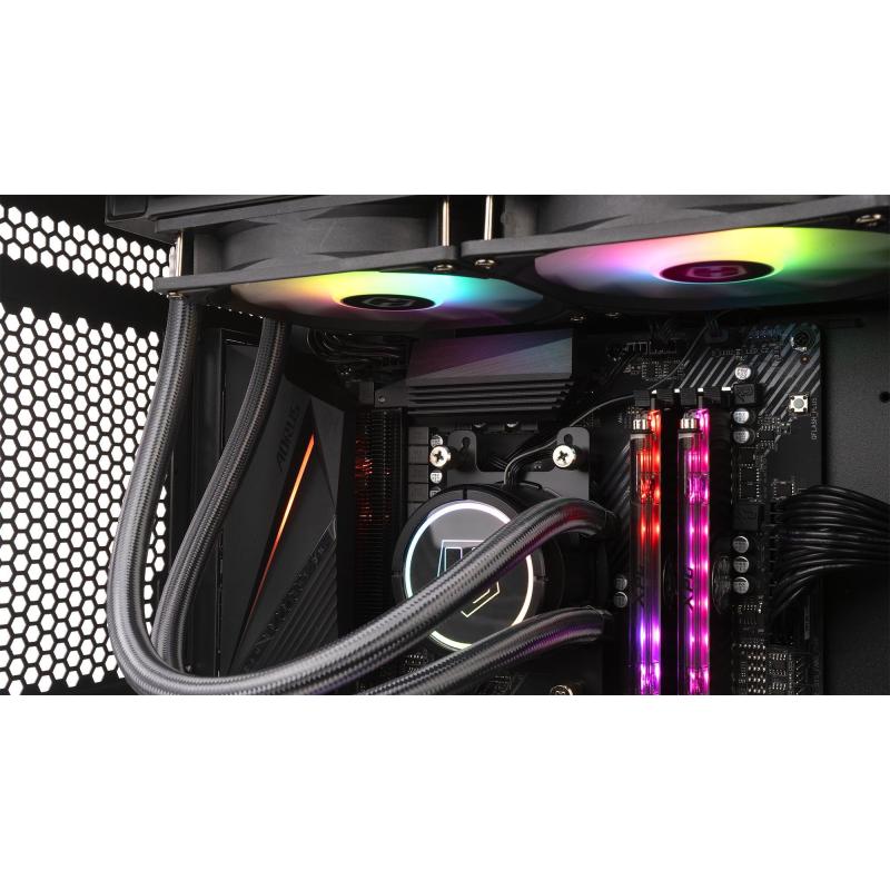 El apartado para refrigeración líquida también es muy completo, ya que podemos instalar un sistema con radiador doble de 240 mm, 280 mm o 360 mm en el panel frontal, o bien de 120 mm o 240 mm en el panel superior o de 120 mm en la parte posterior.