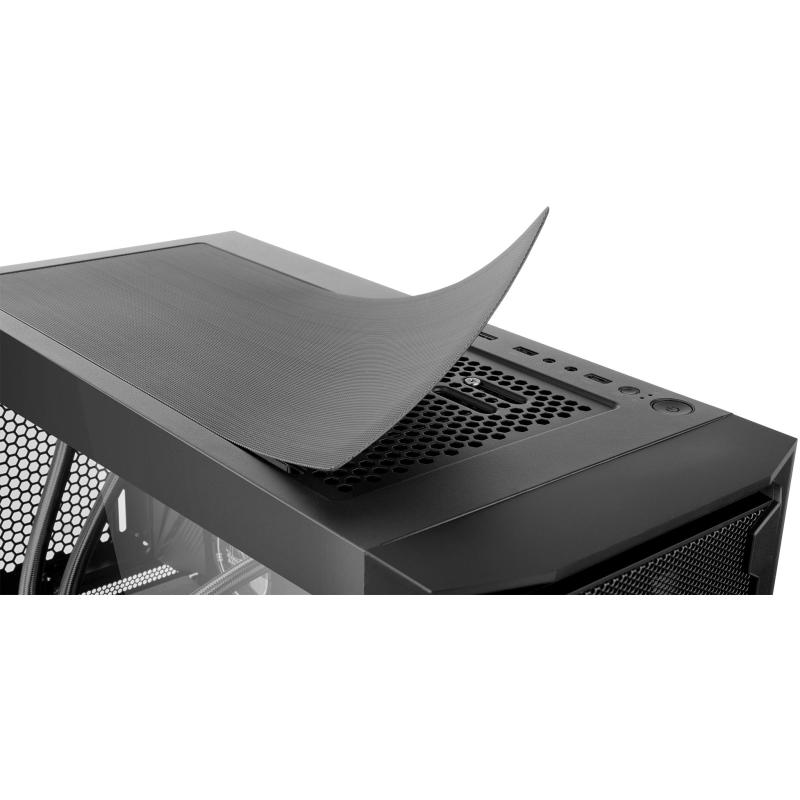 El sistema de enfriamiento es altamente eficiente, con 2 ventiladores frontales de 200 mm ya instalados y capacidad para añadir más ventiladores en la parte frontal, trasera y superior, asegurando una óptima circulación del aire.