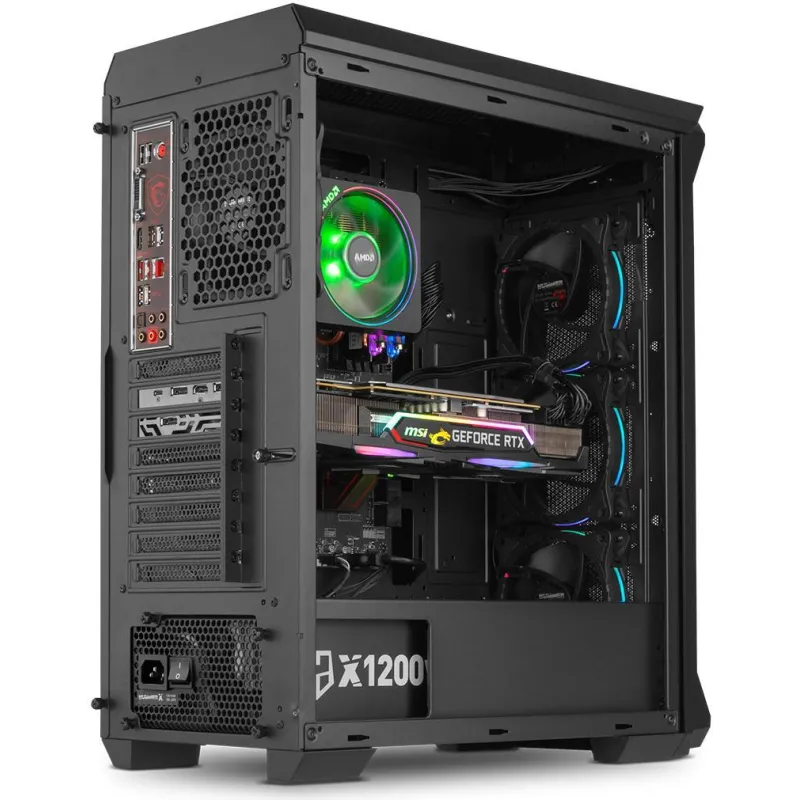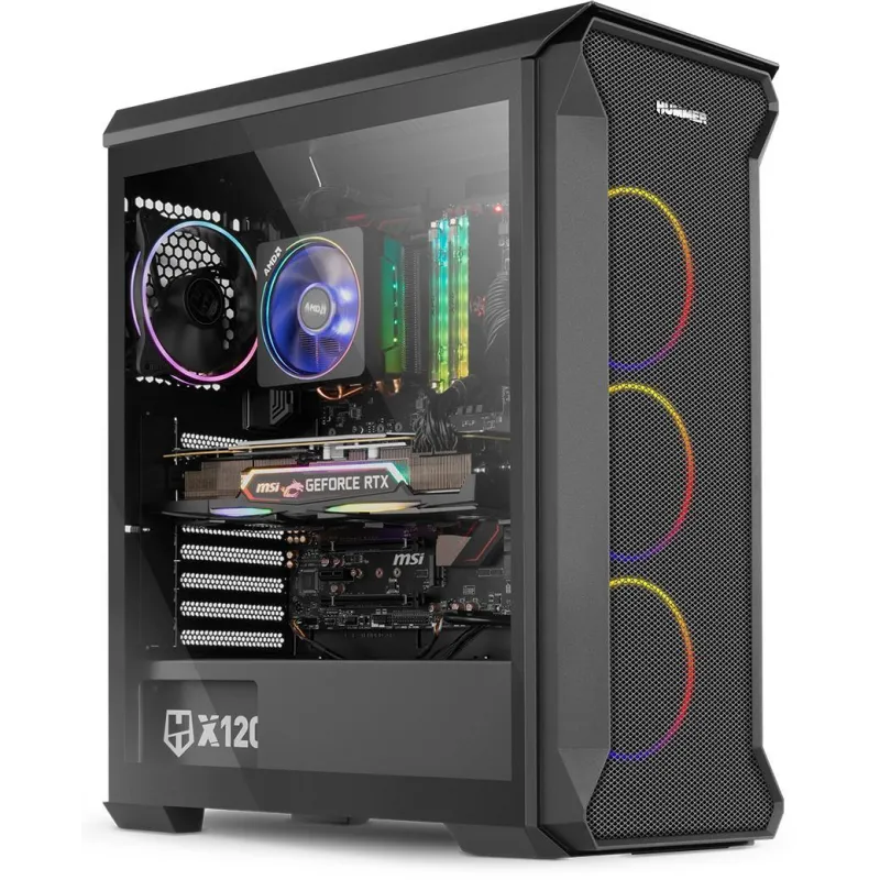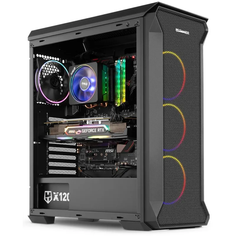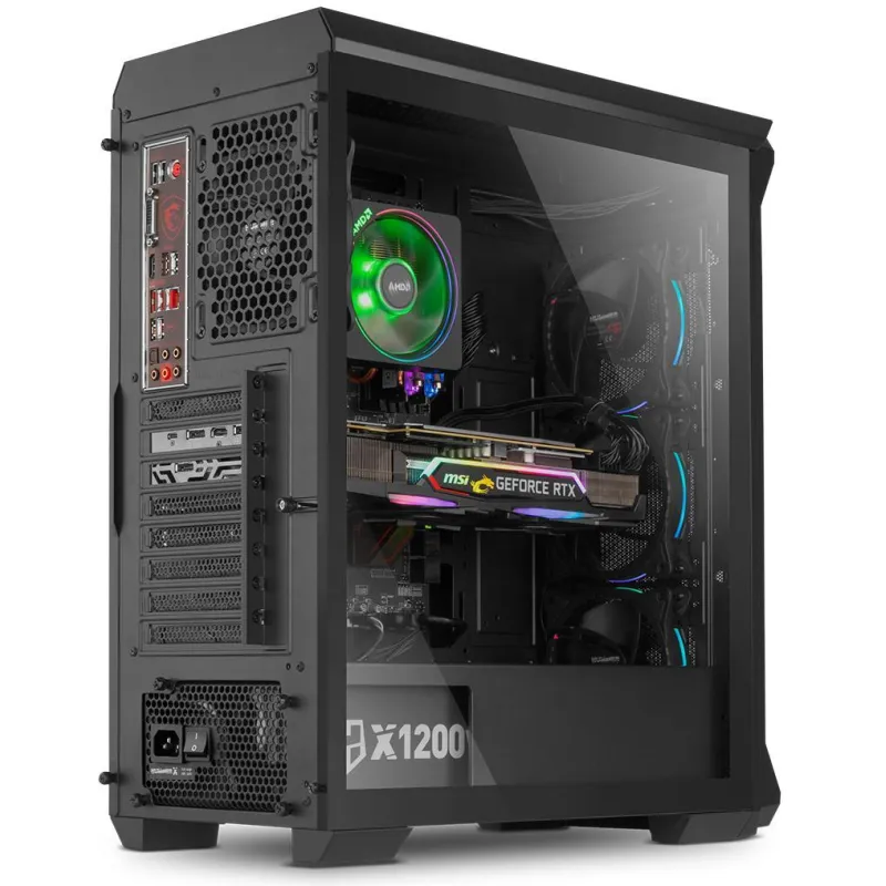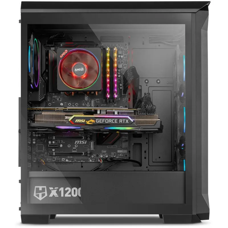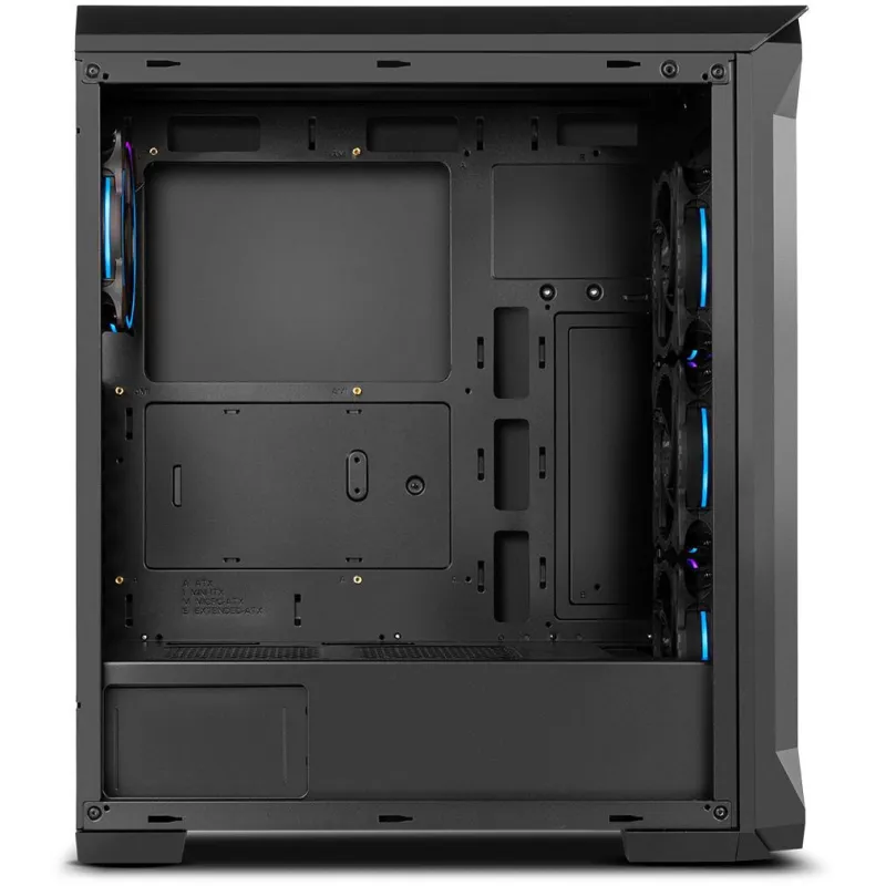 ILUMINACIÓN ARGB CHASIS DE VIDRIO TEMPLADO COMPLETO: Una robusta torre con un original y rompedor diseño que permite crear espectaculares efectos de color gracias a sus cuatro ventiladores ARGB de 120 mm que incluye y que podrás contemplar en todo momento gracias a su panel lateral de cristal templado.