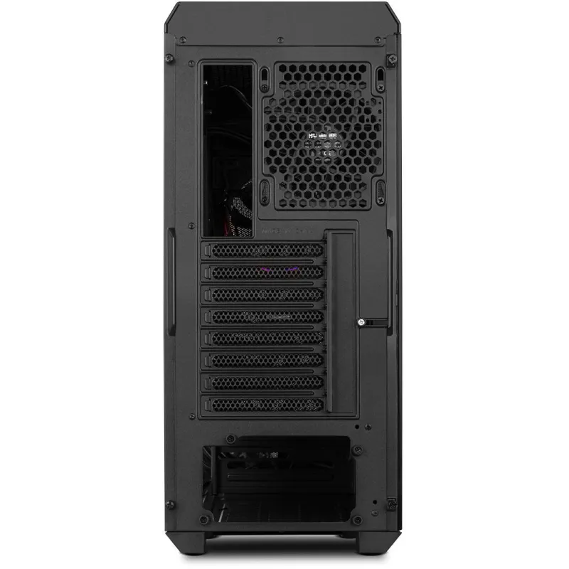 Este chasis ofrece una excelente capacidad de expansión con 2 puertos de 3.5" y 7 bahías de 2.5", así como 8 ranuras de expansión. Además, cuenta con una práctica ventana lateral para exhibir los componentes internos y una eficiente gestión de cables para mantener todo en orden. Los botones de restaurar y encendido/apagado están convenientemente ubicados para un fácil acceso.