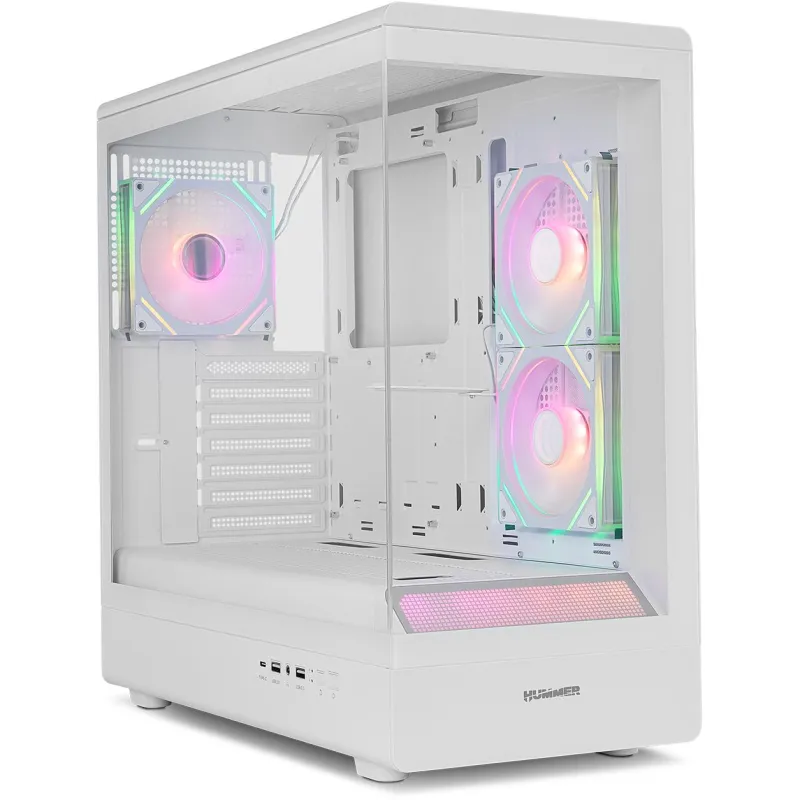 NOX HUMMER SIGNAL Blanco | Semitorre ARGB panorámica, 3 ventiladores incluidos, USB-C, GPU 420 mm