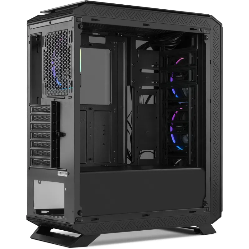 Optimizado para un rendimiento superior, el sistema de enfriamiento incluye 3 ventiladores frontales de 120 mm y 1 ventilador trasero de 120 mm, con soporte para radiadores de hasta 280 mm en la parte frontal y superior, y hasta 140 mm en la parte trasera. Además, su diseño permite una gestión eficiente del calor con un máximo de 37 cm de longitud para tarjetas gráficas y 17,9 cm de altura para CPU.