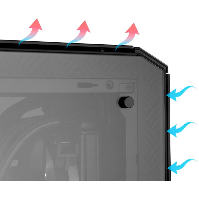 OPCIONES DE REFRIGERACIÓN: En el interior de Hummer TGF es posible instalar sistemas de refrigeración líquida con radiadores de 240 mm o 280 mm en el panel frontal y superior o de 120 mm o 140 mm en el panel trasero.