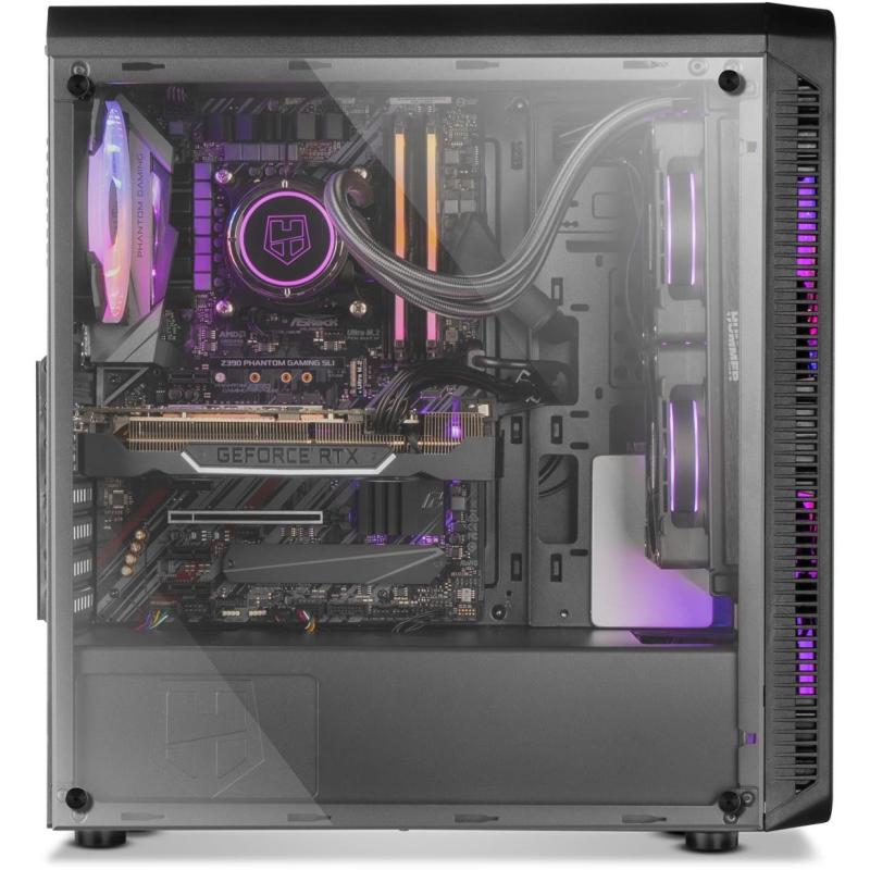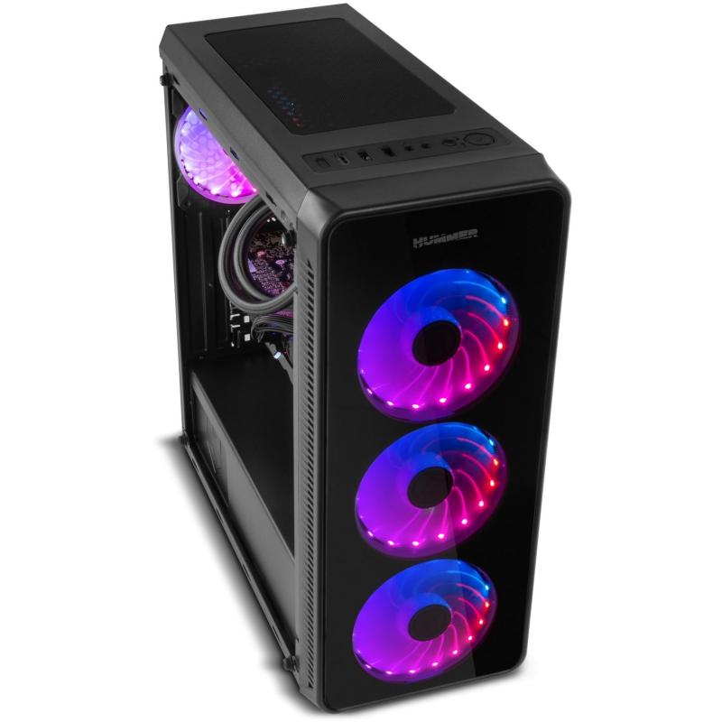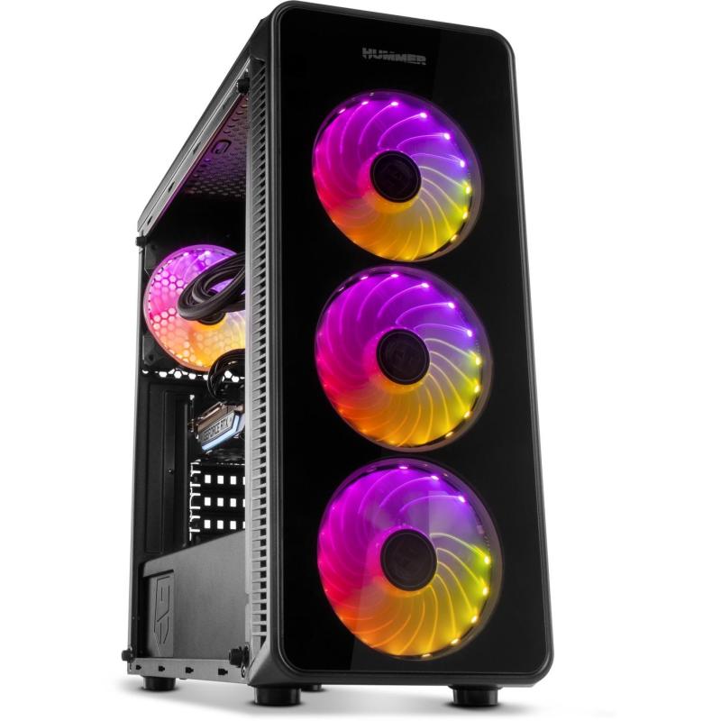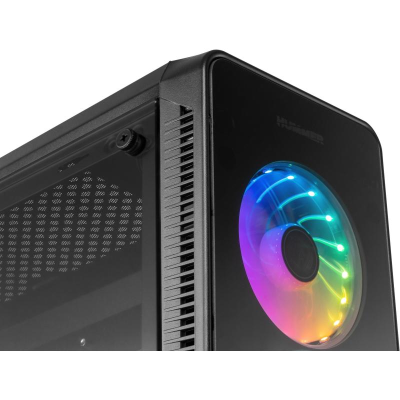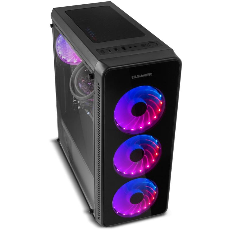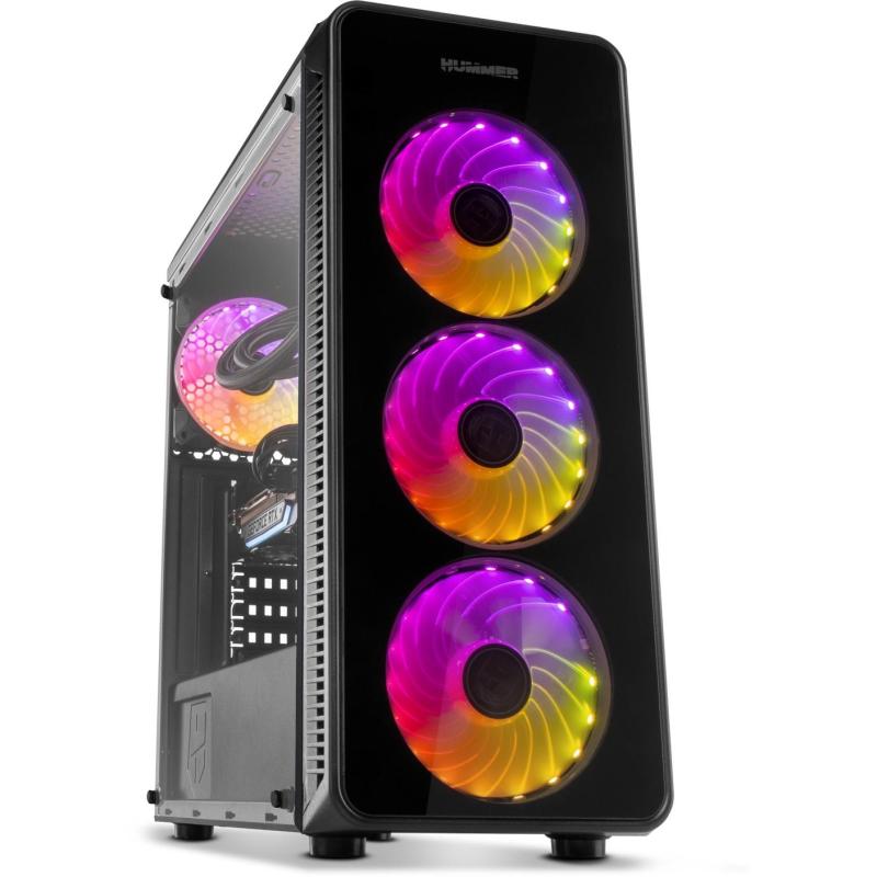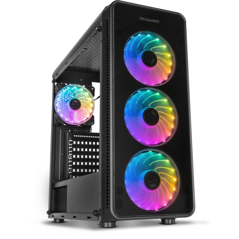 PANEL FRONTAL Y LATERAL DE CRISTAL TEMPLADO: Un robusto diseño que brilla por su presencia gracias a sus paneles frontal y lateral de cristal templado que permiten mostrar el interior del equipo, siendo uno de sus principales atractivos el espectáculo de luces y movimiento que te ofrecen sus ventiladores RGB. Hummer TGM subraya los elegantes acabados y altas prestaciones propios de una de las series insignias de Nox.