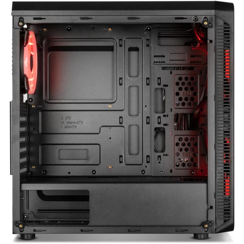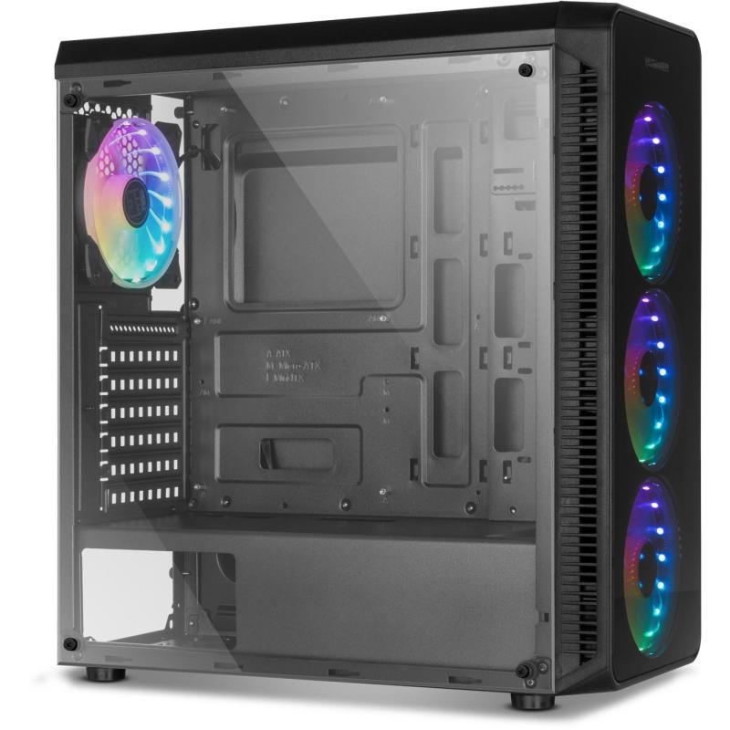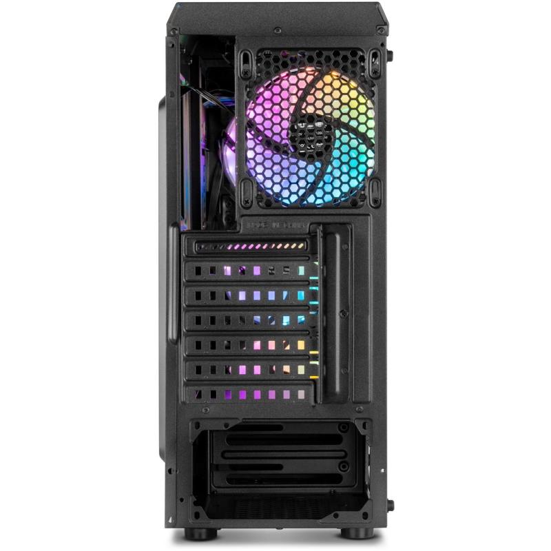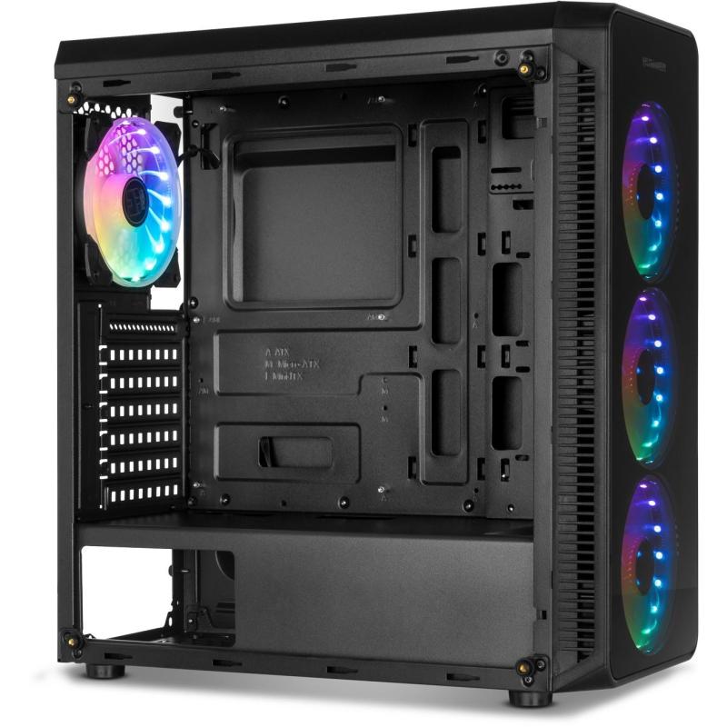 Este gabinete para PC en negro combina elegancia y funcionalidad con su material SPCC y vidrio templado en el diseño. Ideal para configuraciones de juego, su factor de forma Midi Tower soporta tarjetas madre ATX, micro ATX y Mini-ITX. Dispone de 2 bahías de 3.5" y 2 bahías de 2.5", además de 7 ranuras de expansión para una máxima versatilidad. La ventana lateral y la iluminación multicolor en los ventiladores añaden un toque estético impresionante, mientras que la gestión de cables asegura un interior ordenado.