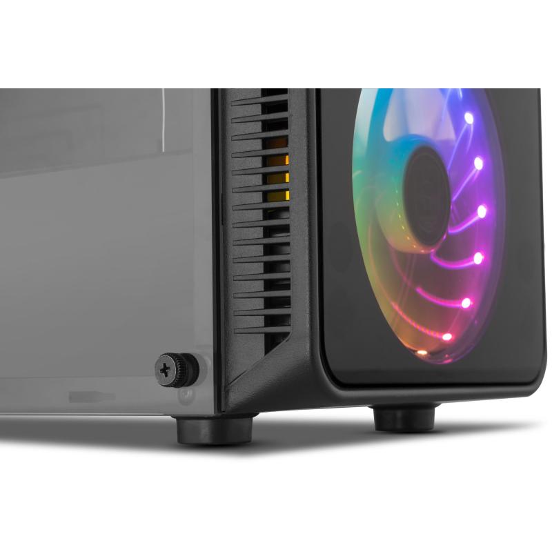 ILUMINACIÓN MULTICOLOR: La iluminación juega un papel crucial en la creación de una atmósfera envolvente. Con luces multicolor ubicadas estratégicamente en los ventiladores de la caja, añade un toque de personalización y estilo a tu entorno de juego. Esta característica no solo mejora la estética, sino que también permite una mejor visualización de los componentes internos. Los paneles de vidrio templado no solo protegen, sino que también permiten disfrutar de este espectáculo de luces con total claridad. Un toque de modernidad que no pasa desapercibido.