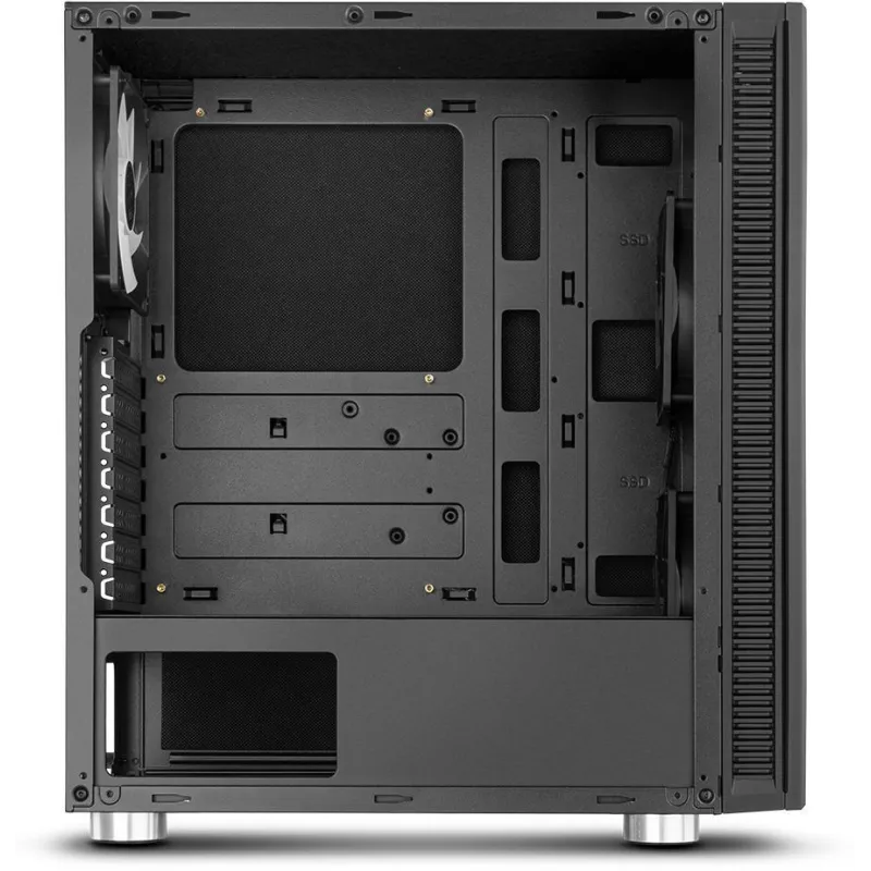 El chasis de PC en formato Midi Tower está fabricado con Acrilonitrilo butadieno estireno (ABS) y SPCC, proporcionando una estructura robusta y duradera. Con un elegante color negro, es compatible con tarjetas madre ATX, micro ATX y Mini-ITX, ofreciendo flexibilidad en la elección de componentes. Dispone de dos bahías de 3.5" y dos bahías de 2.5", junto con siete ranuras de expansión, permitiendo una amplia capacidad de almacenamiento y expansión.
