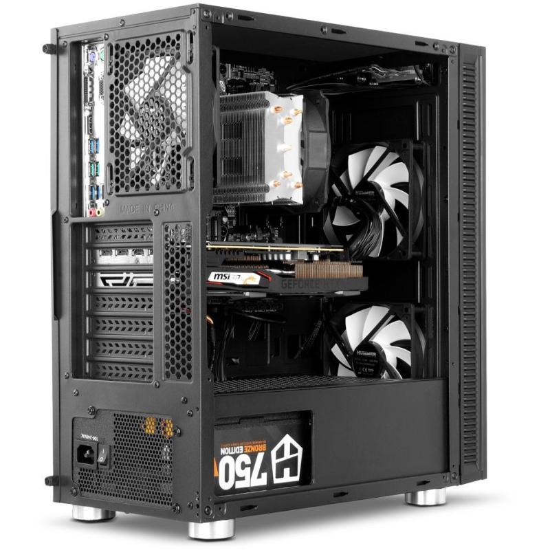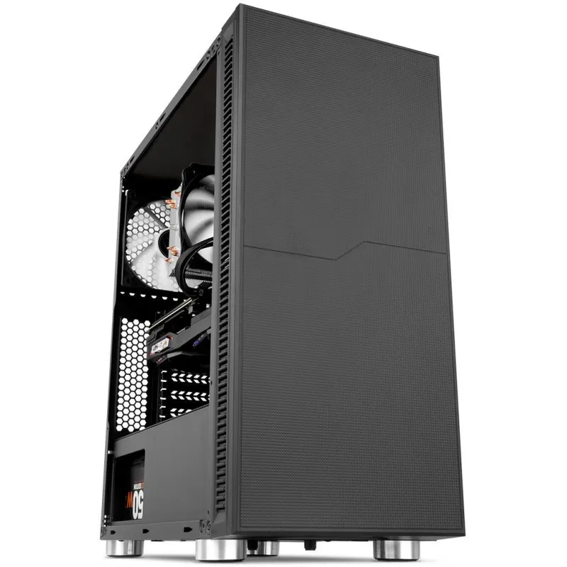 DISEÑO INNOVADOR: Confeccionado con materiales de alta calidad como el Acrilonitrilo butadieno estireno (ABS) y SPCC, este dispositivo combina robustez y estilo. Su factor de forma Midi Tower no solo ofrece una estética elegante, sino también funcionalidad a la hora de organizar los componentes internos. Disponible en un sobrio color negro, se adapta a cualquier entorno laboral o doméstico. Compatible con diversas formas de factor de tarjeta madre, incluyendo ATX, micro ATX y Mini-ITX, permite una flexibilidad sin igual para ensamblar un sistema a medida. Posee dos puertos de 3.5", dos bahías de 2.5" y dos bahías internas adicionales de 3.5", así como siete ranuras de expansión, lo que facilita la instalación de múltiples dispositivos. Aunque no dispone de ventana lateral, su sistema de gestión de cables asegura un interior ordenado y eficiente. Incluye botones de restaurar y encendido/apagado, pensados para una operatividad sencilla y rápida. La altura máxima para el CPU más fresco es de 15,4 cm y la longitud máxima para la tarjeta de gráficos es de 32 cm, permitiendo la integración de componentes de alta gama.
