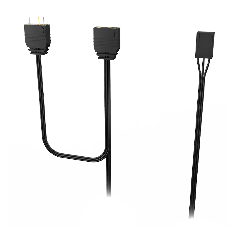 UN ARCOÍRIS DE POSIBILIDADES: Para poder conectarlo, X-FAN cuenta con un conector de corriente de 3 pines. Además, incorpora un conector ARGB macho de 3 pines para poder sumar más ventiladores en serie para multiplicar el caudal de aire a todo color.