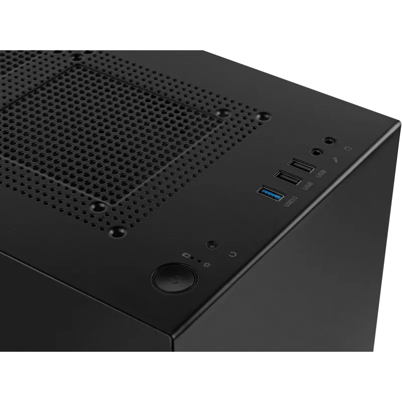 El chasis de este PC presenta un material robusto SPCC y un elegante diseño en color negro, destacándose por su factor de forma Mini Tower, ideal para configuraciones compactas. Es compatible con tarjetas madre micro ATX y Mini-ITX, y ofrece una excelente capacidad de expansión con 2 bahías de 3,5" y 2 bahías de 2,5". La inclusión de 4 ranuras de expansión permite una personalización flexible.