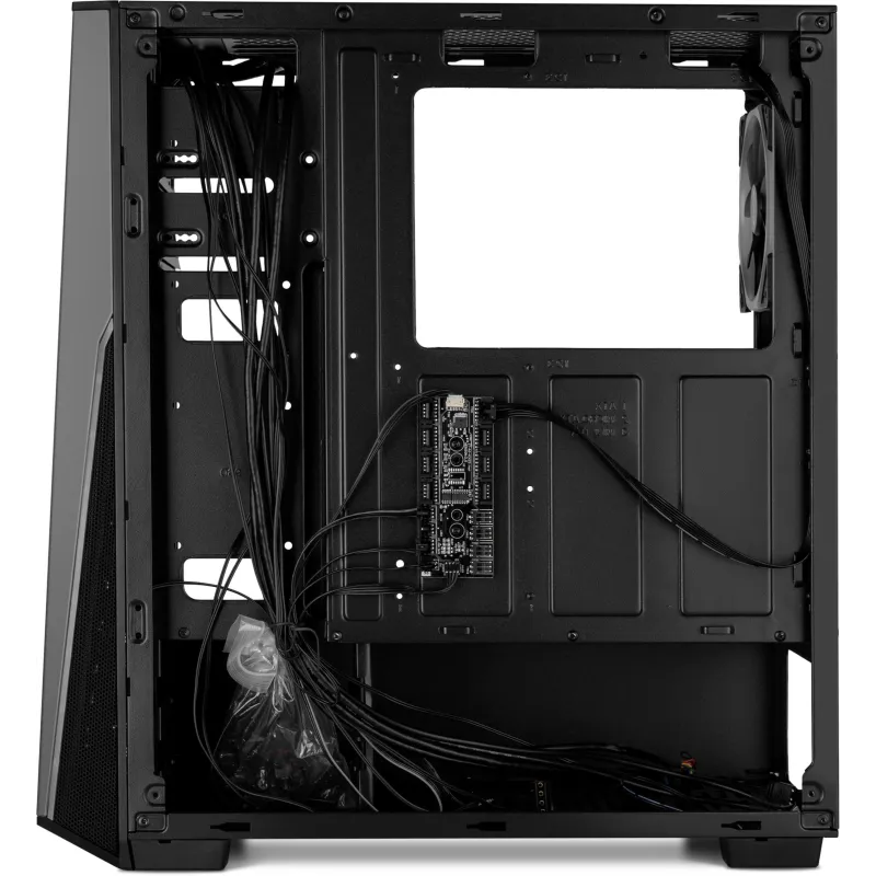 Este gabinete para PC presenta un elegante diseño en color negro y está fabricado con material SPCC de alta calidad. Su factor de forma Midi Tower es ideal para configuraciones de juego, soportando tarjetas madre de distintos tamaños como ATX, ITX y micro ATX. Además, cuenta con un panel lateral de vidrio templado que permite mostrar el interior del equipo.