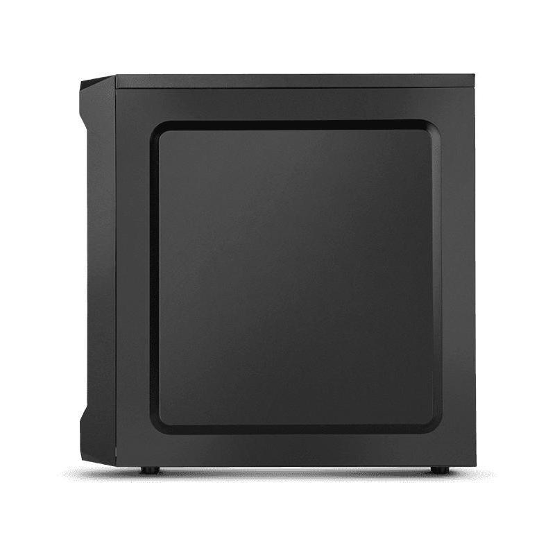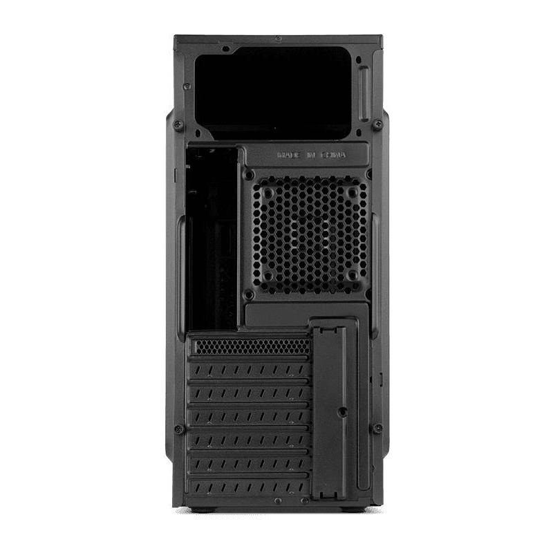 DISEÑO MINIMALISTA Y FUNCIONAL: Con un acabado en negro mate, este modelo destaca por su elegancia sobria y profesional. Su factor de forma Midi Tower lo hace adaptable tanto para el hogar como para el entorno de oficina, ofreciendo una versatilidad que se ajusta a diversas necesidades. Los materiales empleados, plástico y SPCC, aseguran una estructura resistente y duradera, mientras que la compatibilidad con tarjetas madre ATX y micro ATX proporciona flexibilidad para configuraciones variadas. Los múltiples puertos y bahías, incluyendo cuatro de 3.5" y una de 5.25", permiten una amplia capacidad de expansión y almacenamiento.