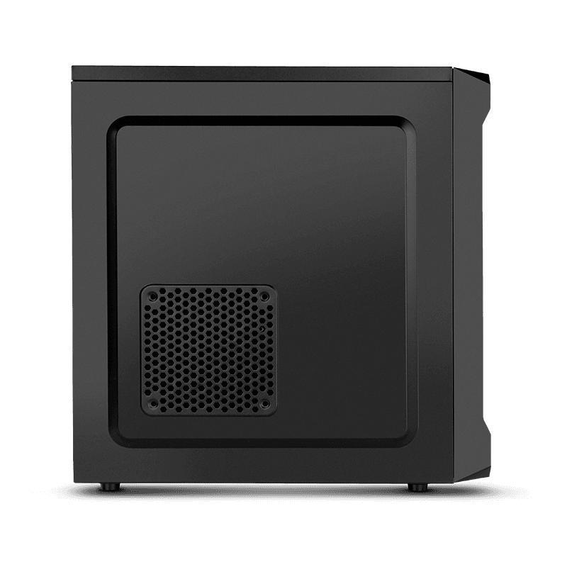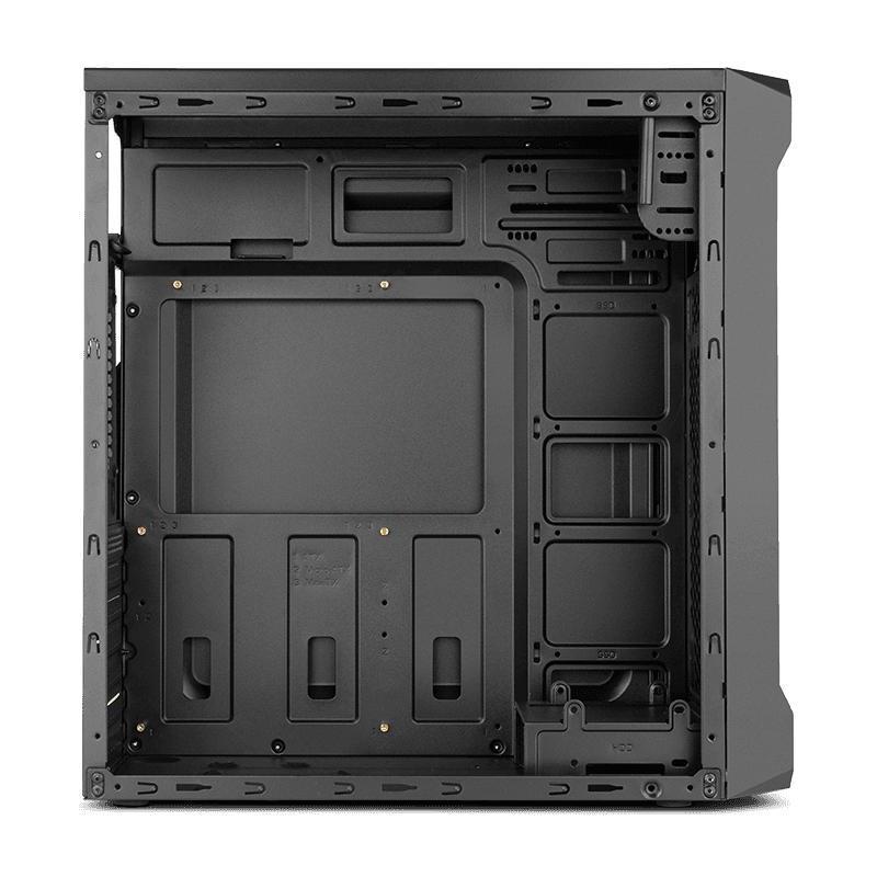 El sistema de enfriamiento es altamente configurable, soportando hasta 1 ventilador frontal de 120 mm, 1 ventilador lateral de 120 o 140 mm y 1 ventilador trasero de 80 o 120 mm, lo que garantiza una óptima ventilación y rendimiento térmico. Aunque la fuente de alimentación no está incluida, el chasis es compatible con fuentes de alimentación ATX ubicadas en la parte superior, lo que facilita su instalación y mantenimiento.