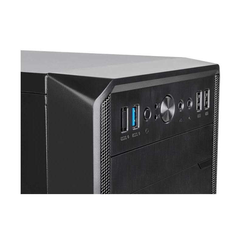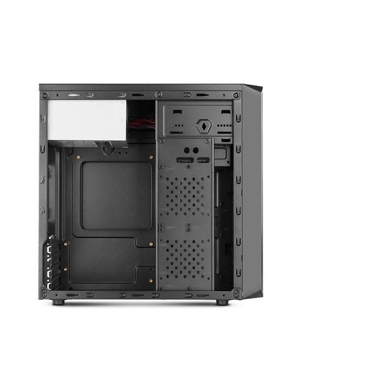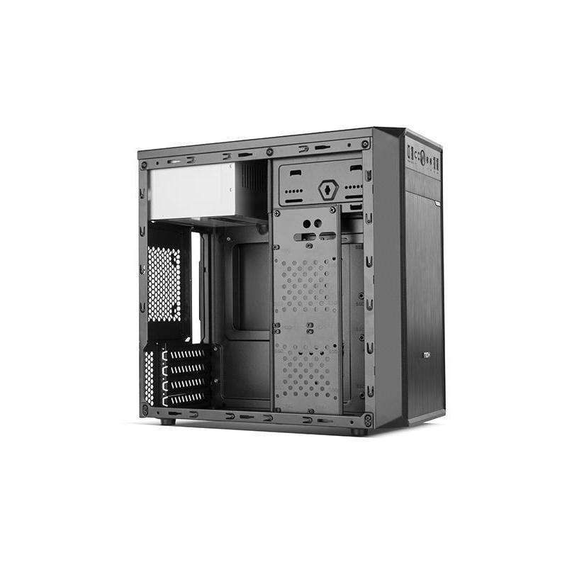DISEÑO ELEGANTE Y FUNCIONAL: Con un exterior de plástico robusto y SPCC, este modelo presenta un factor de forma Midi Tower, ideal para cualquier configuración de PC. Su color negro clásico se adapta tanto a entornos domésticos como de oficina, ofreciendo una versatilidad visual sin igual. Además, es compatible con tarjetas madre micro ATX y Mini-ITX, lo que lo convierte en una opción flexible para diferentes tipos de usuarios. Sus tres puertos de 3.5", una bahía de 5.25" y cuatro bahías de 2.5" proporcionan amplio espacio de almacenamiento, mientras que las siete ranuras de expansión aseguran que puedas actualizar tu sistema fácilmente. Aunque no cuenta con una ventana lateral, su forma compacta permite un montaje sencillo y limpio. Soporta una altura máxima de CPU cooler de 14,7 cm y una longitud máxima de tarjeta gráfica de 31,5 cm, garantizando así que puedas instalar componentes de alto rendimiento sin problemas.