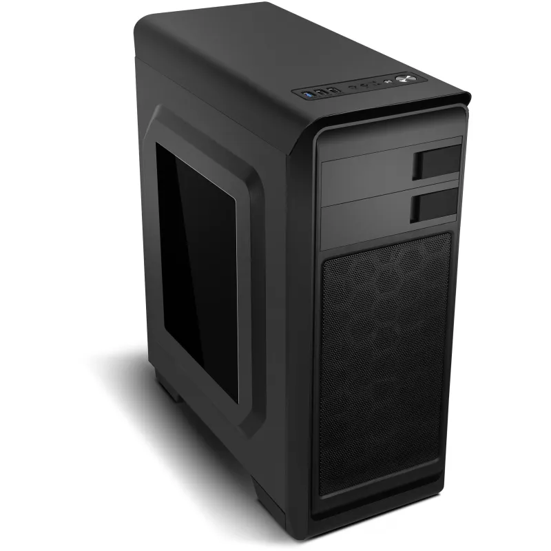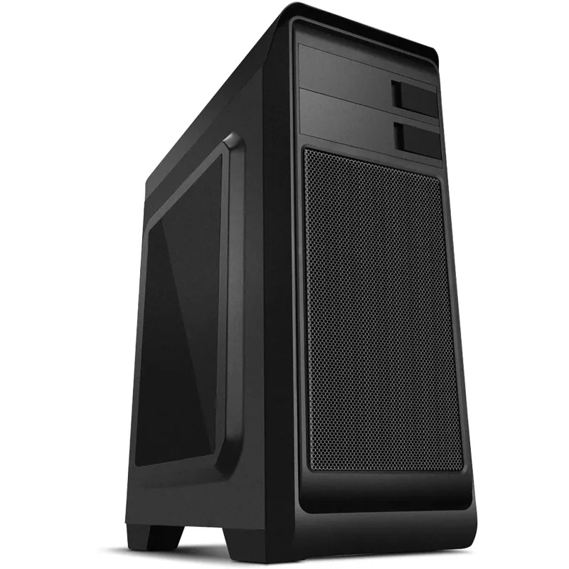 El chasis de Midi Tower está fabricado con material SPCC, ofreciendo una estructura duradera y resistente en un elegante color negro. Compatible con tarjetas madre ATX y micro ATX, este chasis proporciona una excelente capacidad de expansión y almacenamiento con 2 puertos de 3.5", 2 puertos de 5.25" y 1 bahía de 2.5". Además, cuenta con 2 receptáculos externos de 5.25" y 7 ranuras de expansión.