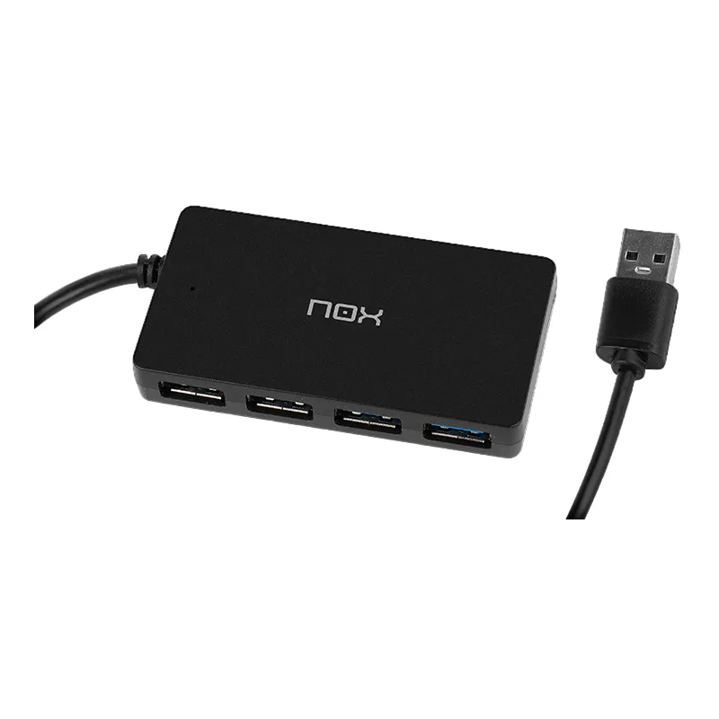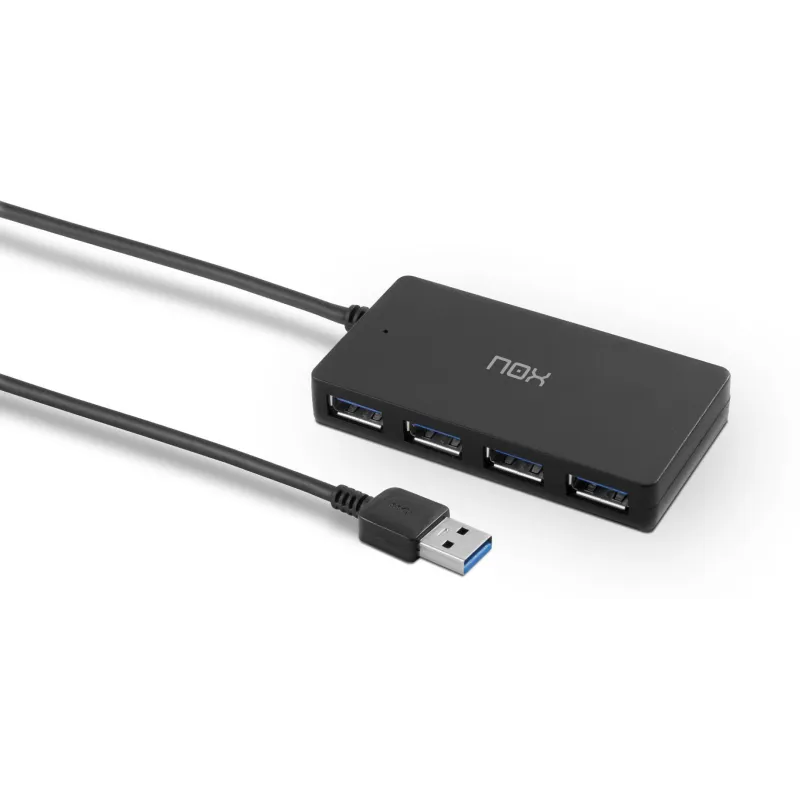 NOX LITE HUB ONE: Nox Lite Hub One permite conectar hasta cuatro dispositivos diferentes a través de USB 3.0, tales como discos duros, ratones, teclados o impresoras. Con velocidad de transferencia superrápida, este accesorio ofrece cuatro puertos adicionales con los que expandir los puertos USB de tu ordenador o portátil. Los puertos USB de este hub de Nox permiten, además, transmitir archivos a una velocidad diez veces superior a la de los USB 2.0.