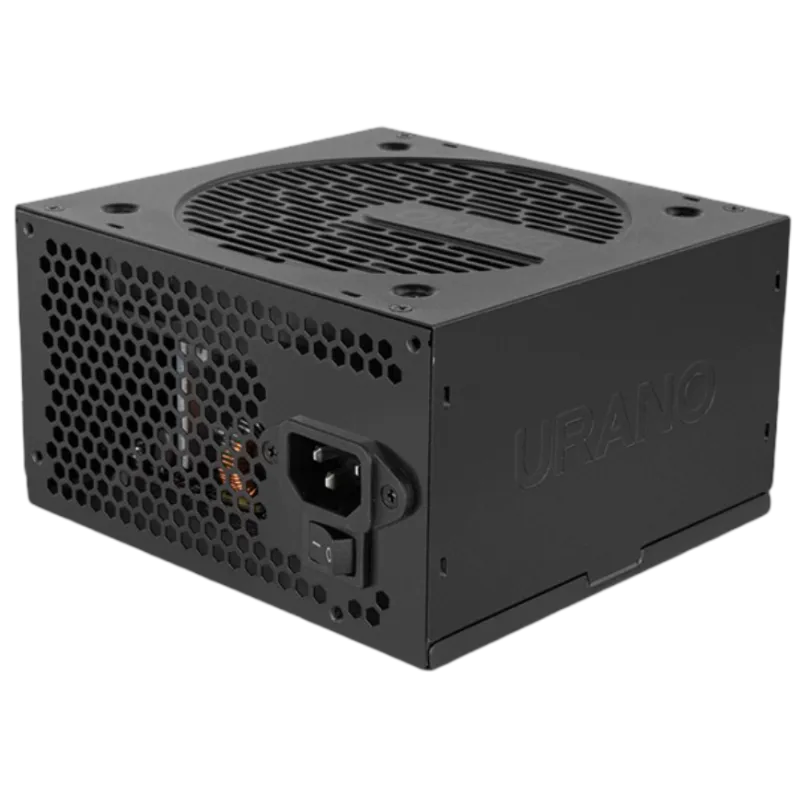 El sistema de refrigeración activa con ventilador de 12 cm proporciona una disipación de calor eficiente y silenciosa. Gracias a su modo silencioso, la Fuente Nox Urano Pro 750W 80 Plus Bronze Negra mantiene un bajo nivel de ruido incluso durante largas sesiones de uso. Este ventilador está ubicado en la parte superior del dispositivo, optimizando el flujo de aire y prolongando la vida útil de los componentes internos. Su funcionamiento estable y silencioso la convierte en una opción ideal para usuarios que valoran tanto el rendimiento como la tranquilidad en su entorno de trabajo o juego.