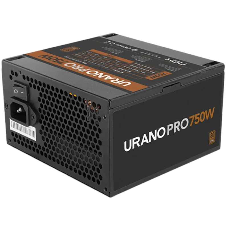 Fuente Nox Urano Pro 750W 80 Plus Bronze Negra con eficiencia del 85%, conectores PCI Express 6+2 pines y compatible con PSU ATX.