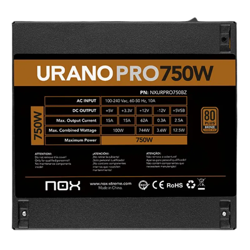 Nox Urano Pro 750W 80 Plus Bronze Negra No Modular