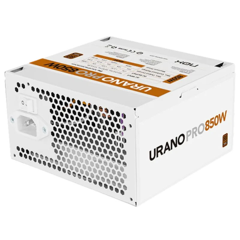 Fuente Nox Urano Pro 850W 80 Plus Bronze White  con eficiencia del 85%, conectores PCI Express 6+2 pines y compatible con PSU ATX.