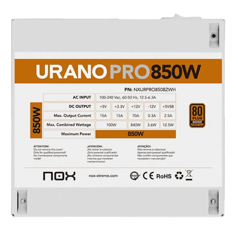 Nox Urano Pro 850W 80 Plus Bronze White No Modular