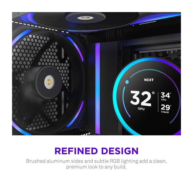 Ventilador NZXT F140X RGB Negro con flujo de aire 116 cfm, velocidad de 2400 rpm y rodamiento FDB, ofrece iluminación LED RGB y control PWM eficiente