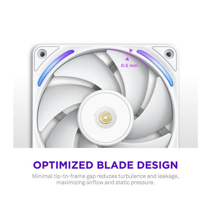 Con una velocidad 3100 RPM, el Ventilador NZXT F240X RGB Blanco se sitúa entre los modelos más potentes del mercado. Esta velocidad permite una respuesta térmica rápida y eficaz, ideal para equipos de alto rendimiento o configuraciones gaming exigentes. Combinado con su flujo de aire 104 cfm, asegura una refrigeración constante incluso bajo carga máxima. La tecnología de rodamiento dinámico fluido (FDB) mejora la eficiencia del ventilador, reduciendo el desgaste y prolongando su vida útil hasta 60.000 horas. Además, su compatibilidad con PWM permite un control inteligente de la velocidad según las necesidades térmicas del sistema, optimizando el consumo energético y el nivel de ruido. El Ventilador NZXT F240X RGB Blanco  es sinónimo de fiabilidad, potencia y control.