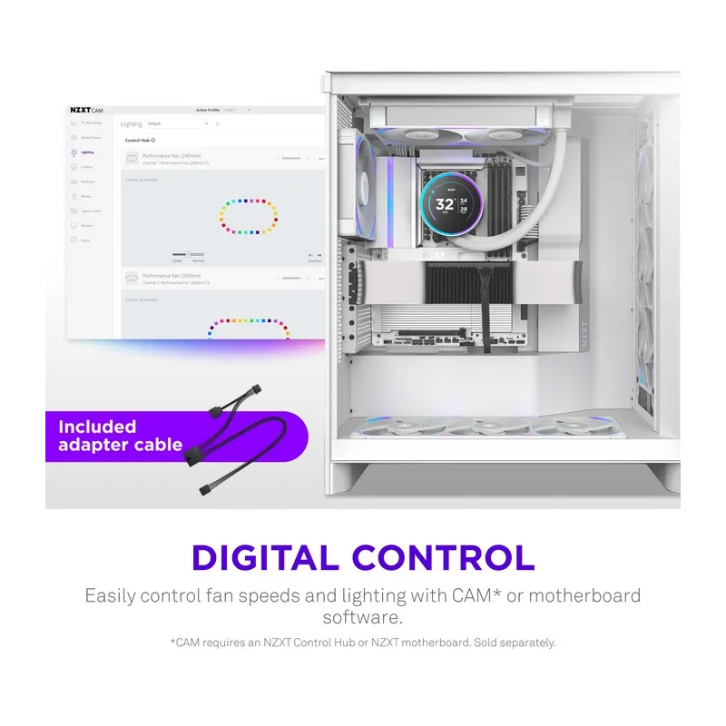 El Ventilador NZXT F240X RGB Blanco  incorpora un sistema de control PWM que permite ajustar automáticamente la velocidad del ventilador según la temperatura del sistema. Esto no solo optimiza el rendimiento térmico, sino que también mantiene el nivel de ruido en un máximo de 41 dB, ideal para quienes buscan un entorno de trabajo o juego más silencioso. Este control inteligente se combina con una velocidad 3100 RPM para ofrecer una respuesta rápida ante aumentos térmicos. El resultado es una refrigeración eficiente sin comprometer el confort acústico. Además, el flujo de aire 104 cfm asegura una ventilación constante, lo que protege los componentes internos y prolonga su vida útil. Con el Ventilador NZXT F240X RGB Blanco , disfrutarás de un equilibrio perfecto entre potencia y silencio.