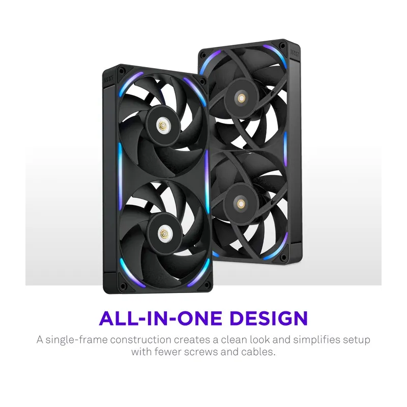 El NZXT F240X RGB Negro ha sido diseñado para ofrecer una refrigeración potente en los entornos más exigentes. Gracias a su flujo de aire 104 cfm y su velocidad 3100 RPM, este ventilador es capaz de mantener temperaturas óptimas incluso bajo cargas elevadas. Su estructura de doble ventilador con siete aspas cada uno proporciona una presión estática de 7,53 mmH2O, ideal para mover aire a través de componentes densamente empaquetados o radiadores. Además, su tecnología de rodamiento dinámico fluido (FDB) garantiza una vida útil prolongada de hasta 60.000 horas, reduciendo el mantenimiento y mejorando la fiabilidad del sistema. Todo esto convierte al NZXT F240X RGB Negro en una elección acertada para entusiastas del hardware y usuarios que buscan un rendimiento térmico superior sin comprometer la durabilidad.